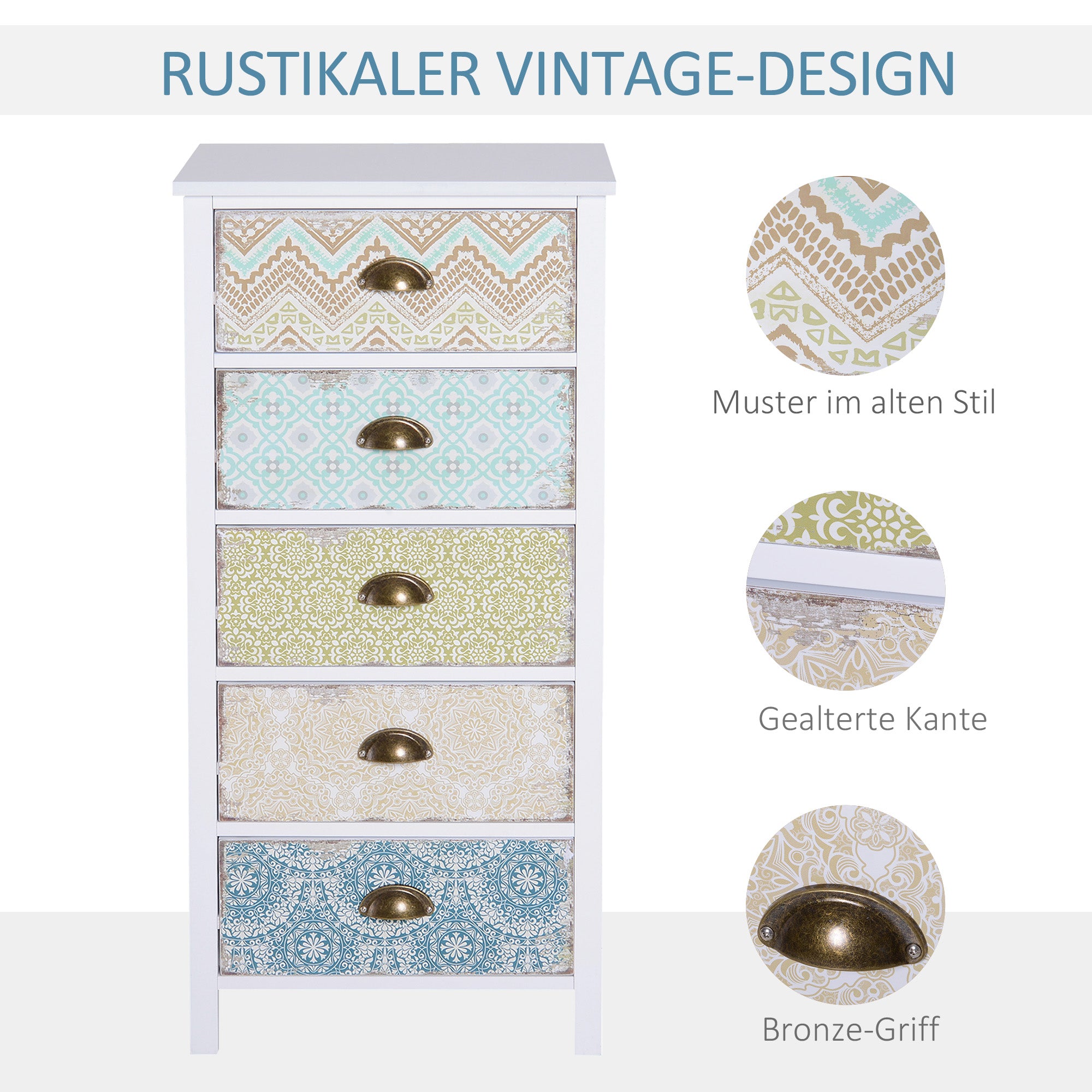 HOMCOM 5-lautaisen Lipaston, Säilytyskaappi Kallistussuojaus Olohuoneeseen, Makuuhuoneeseen, Monivärinen