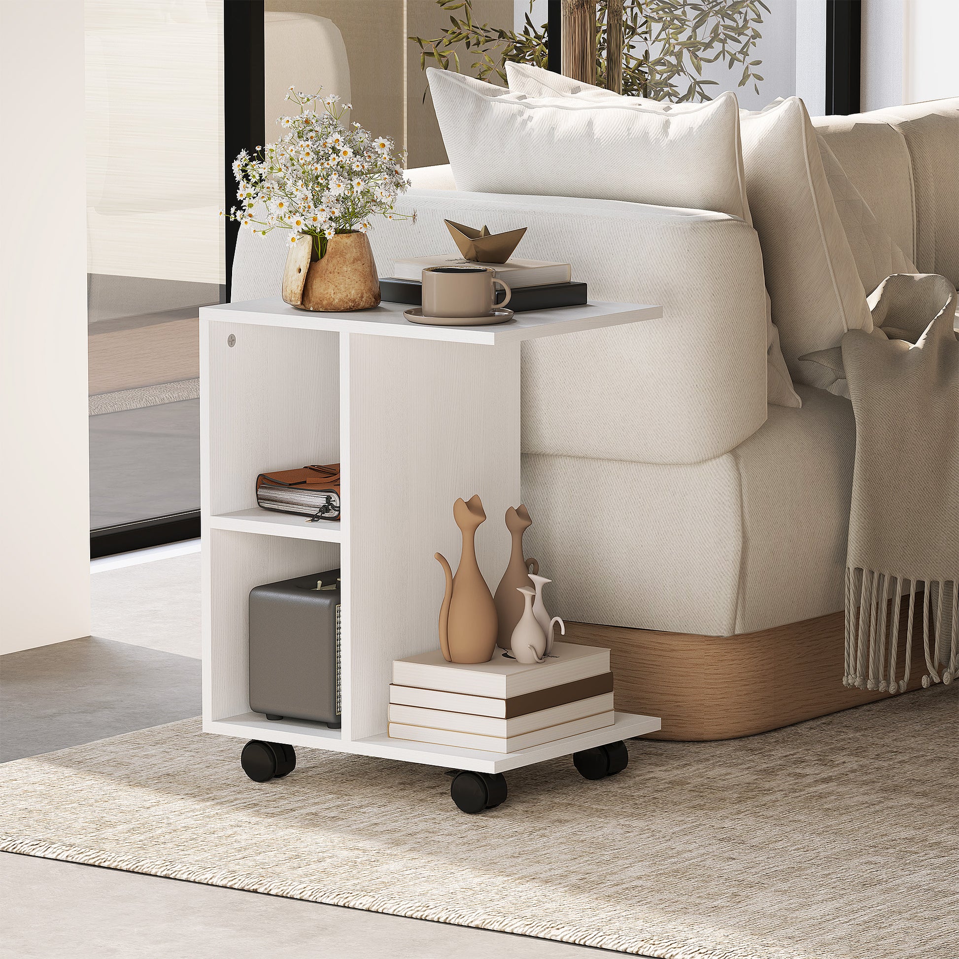 HOMCOM C-mallinen sivupöytä pyörillä, kahvipöytä, kannettava sohvapöytä, pienille tiloille, 45 x 35 x 58 cm, Valkoinen