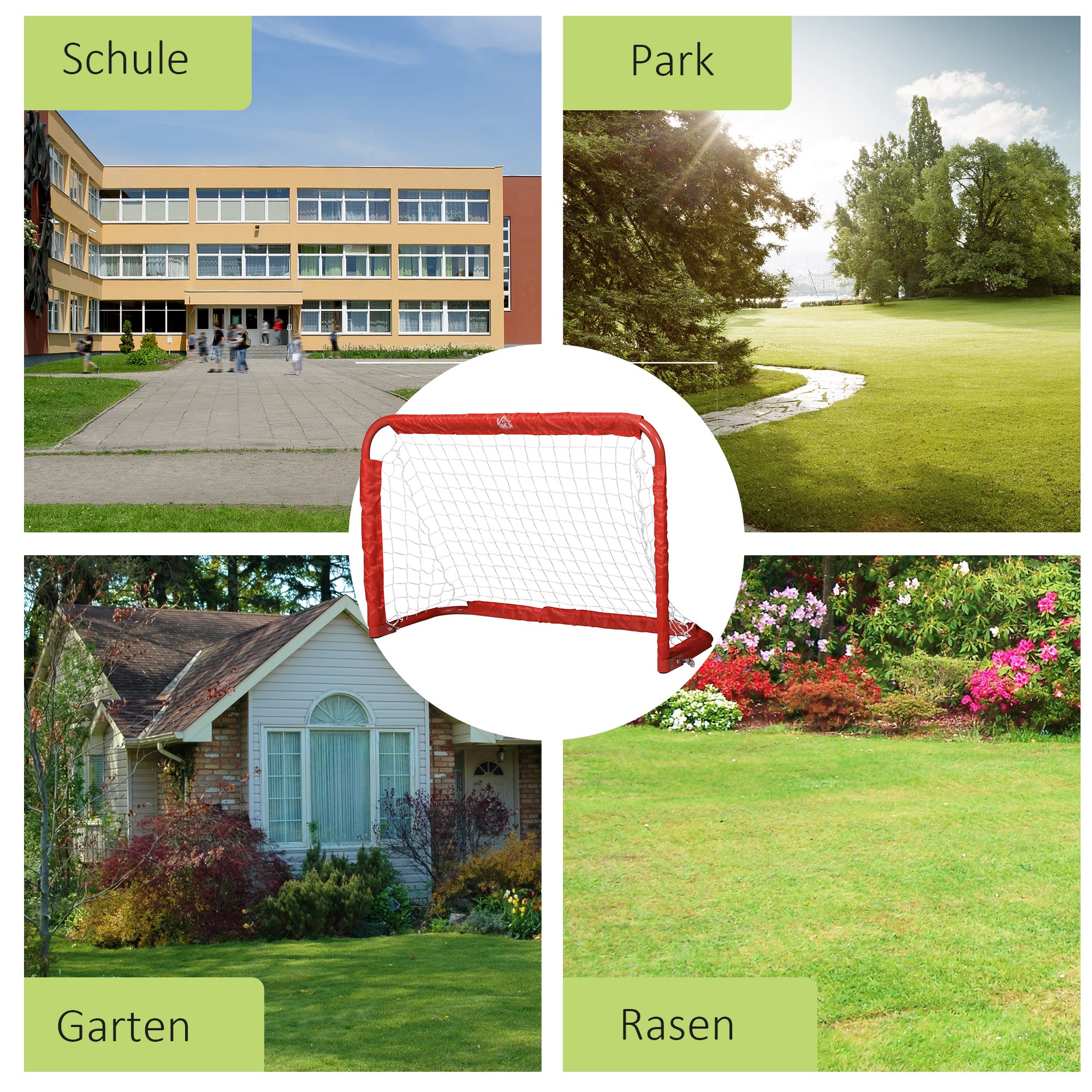 - - Helppo koota: Kiinnitä maali hetkessä neljällä maapinnillä. Punainen raita verkossa helpottaa kohdistamista