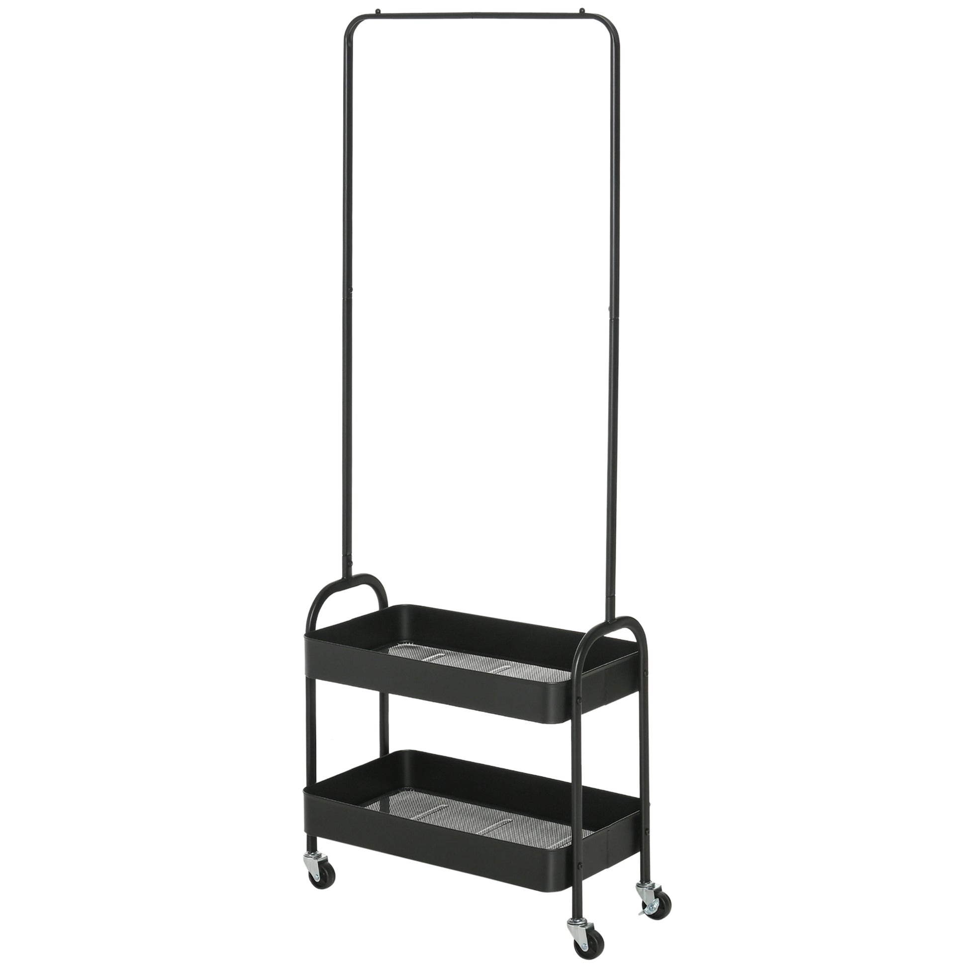 HOMCOM Liikkuva Vaateracki, Takki Teline, Kengät Teline, Itsestään Seisova Vaatekaappi Teräksestä, Olohuoneeseen, Makuuhuoneeseen, kuorma 16 kg, Musta