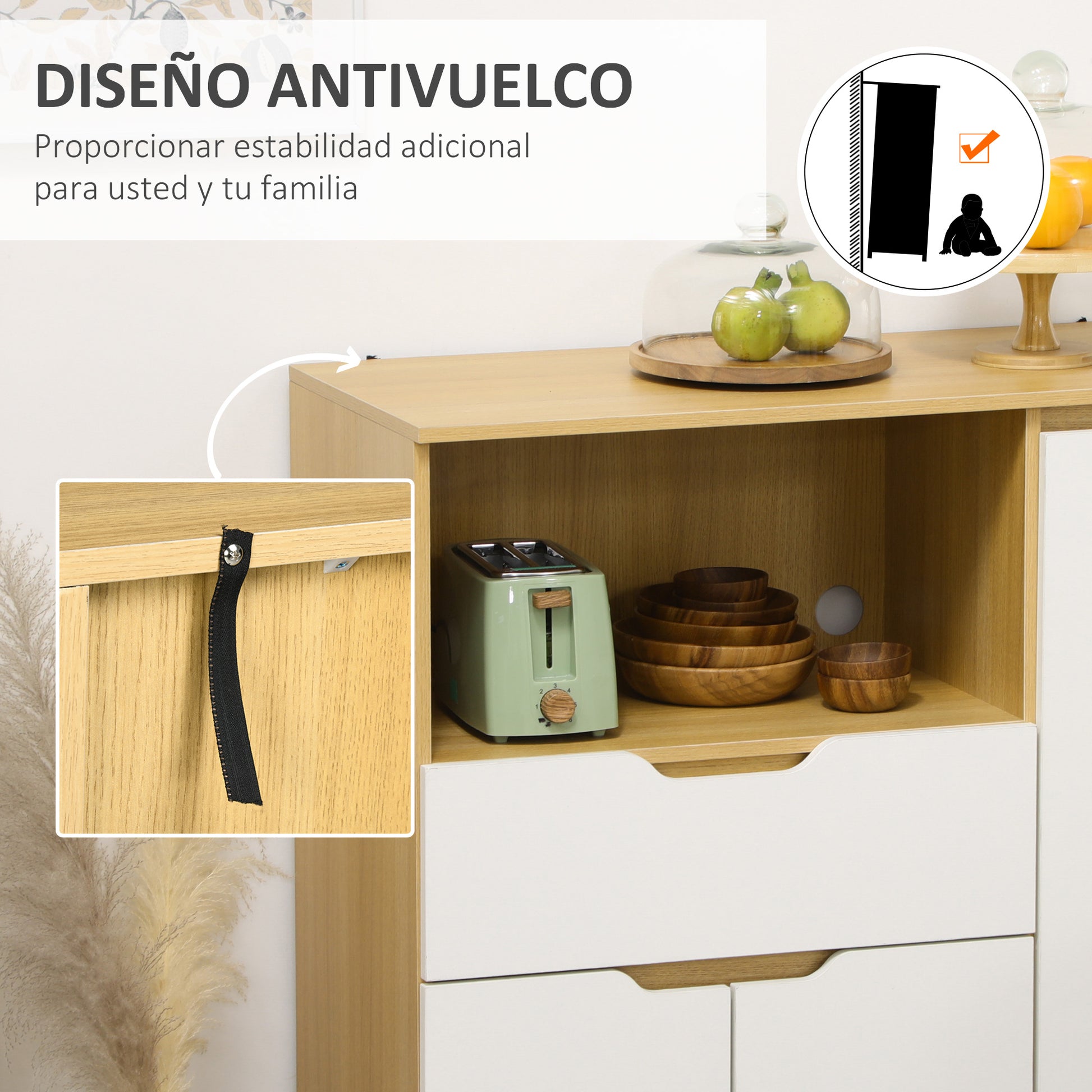 HOMCOM Mikroaaltouuni Kaappi Keittiö Moderni Sivupöytä Laatikolla, 3 Ovelle ja Kompartimentilla Buffet Sivupöytä Ruokasaliin ja Olohuoneeseen 90x40x98.5 cm Valkoinen