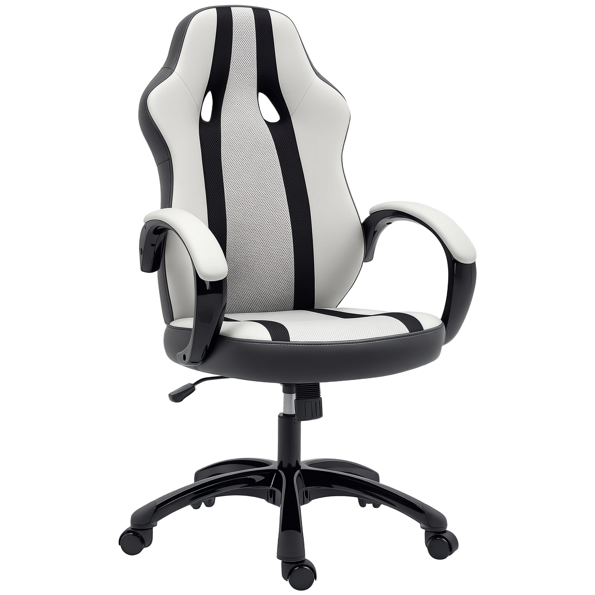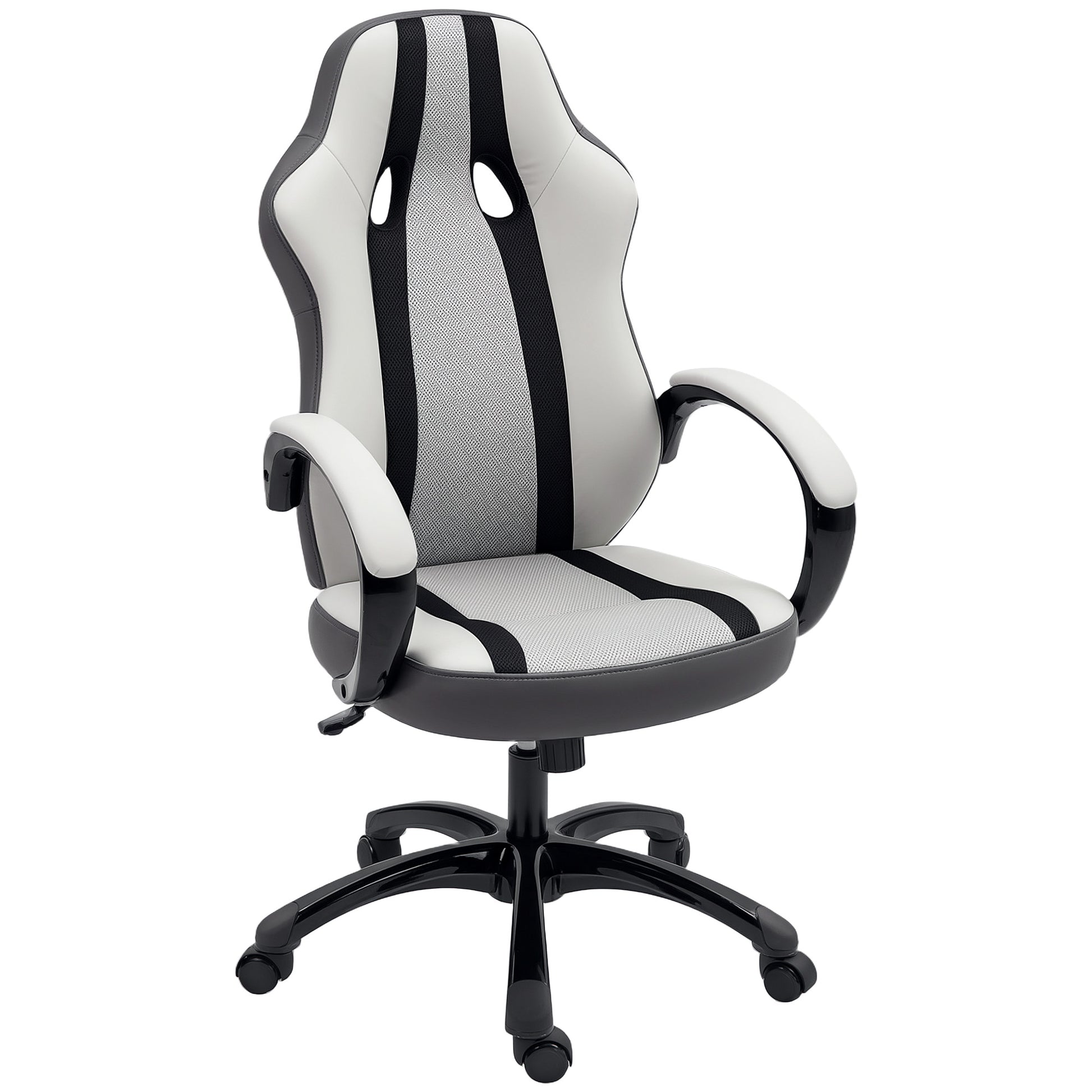 HOMCOM PU- ja verkkokankaisella verhoiltu pelituoli, kääntyvä pelituoli, jossa on keinutustoiminto, säädettävä korkeus kotiin tai toimistoon
