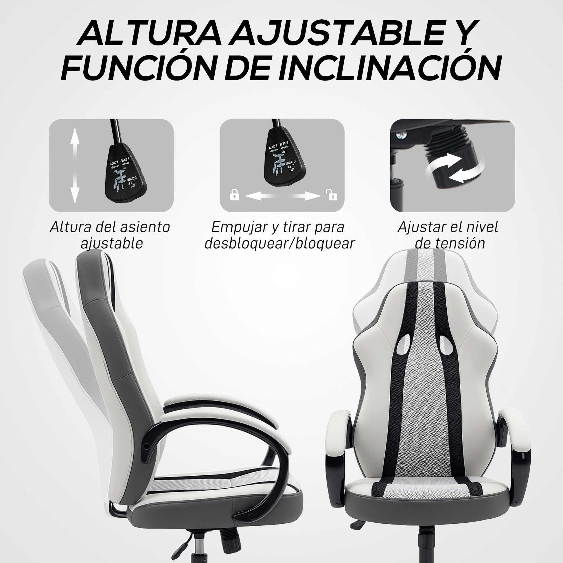 - - KILPA-TYYLINEN: Tunne pelaamisen hyödyt tämän kilpatyylisen pelituolin kanssa. Vaaleanharmaa ja musta muotoilu sekä selkänojan reiät jäljittelevät kilpasijoja ainutlaatuisella läsnäolollaan.