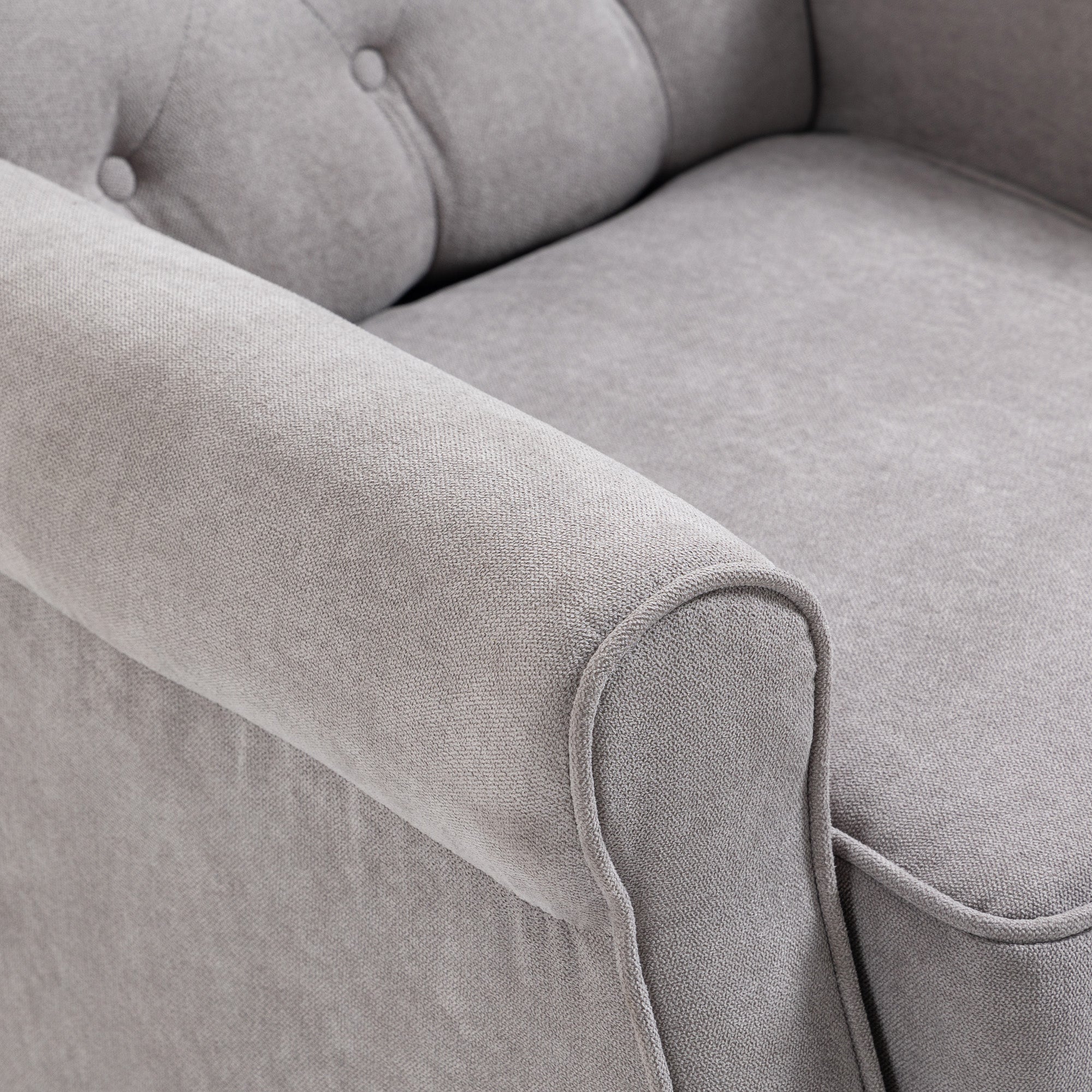 HOMCOM Siipituoli, jossa on napitettu Selkänoja, Korkea Selkänoja, Verhoiltu Oleskelutuoli Kaarevilla Käsinojilla, Puujalat, Makuuhuoneeseen ja Olohuoneeseen, kantavuus 160 kg, Harmaa