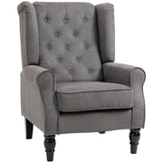 HOMCOM Siipituoli, Napitettu, Korkea Selkänoja, Verhoiltu Olohuoneen Tuoli Pyöreillä Käsinojilla, Puujalat, Makuuhuoneeseen, Olohuoneeseen, Enintään 160 kg, Tummanharmaa