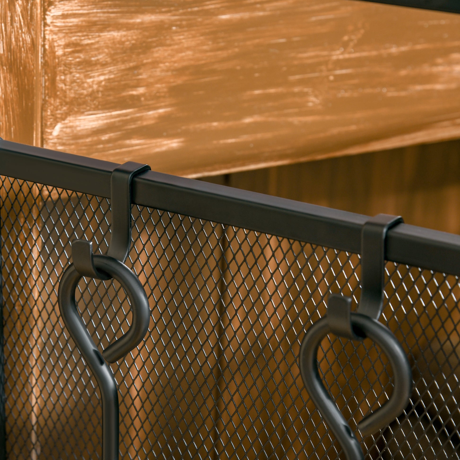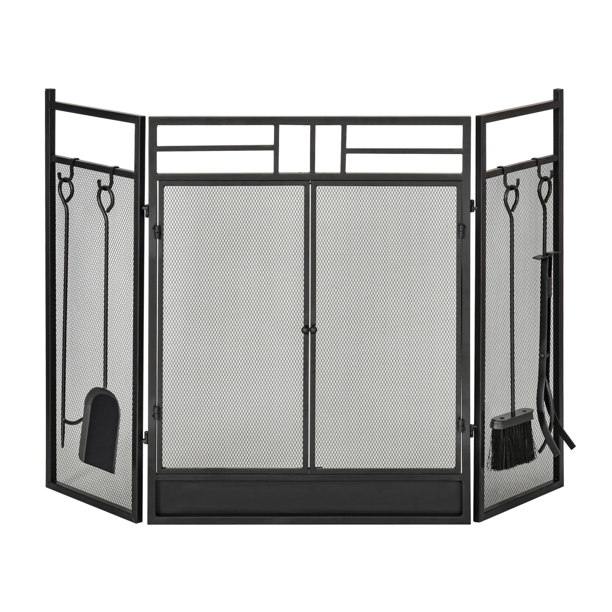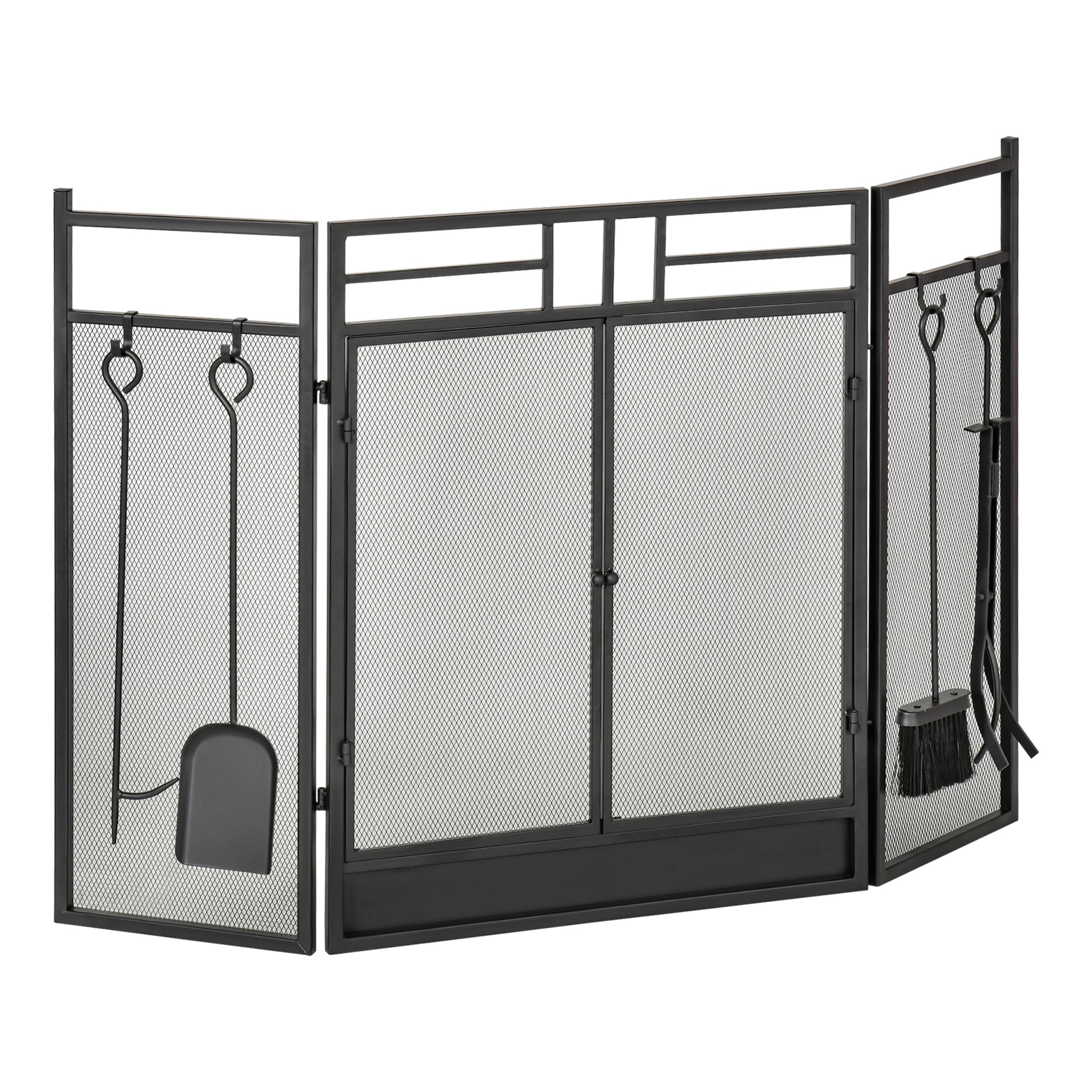 HOMCOM Suuri Takkasuoja takalle tai liesille - 2 in 1 Kipinäsuoja lisävarusteilla - 3 Käännettävää Paneelia ja Ovi - Musta Teräsmetalli