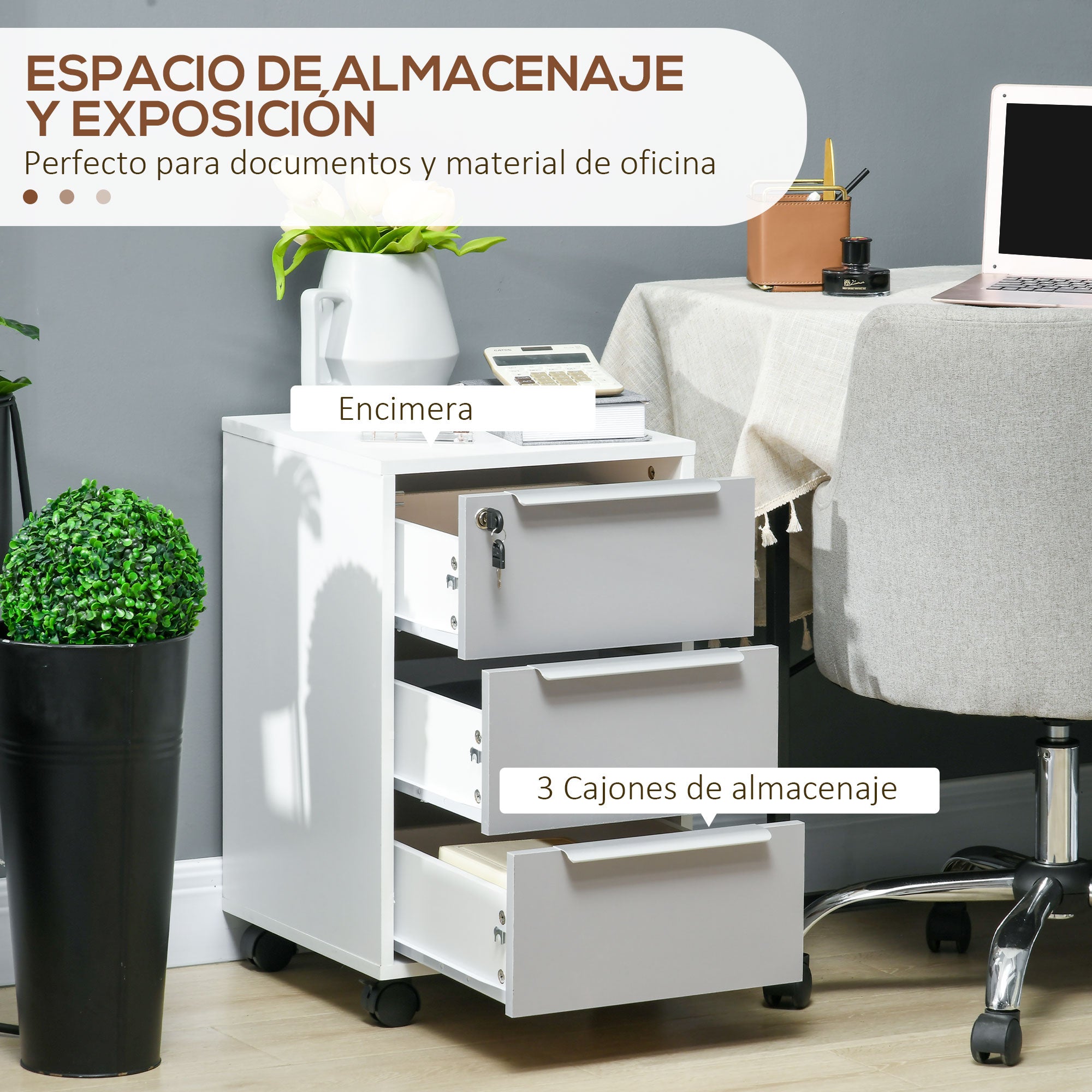 HOMCOM Työpöydän Laatikkoyksikkö, jossa 3 Laatikkoa - Kotitoimiston Arkistokaappi Rullilla, Lukolla ja 2 Avaimella - Liikkuva Arkistokaappi Opiskeluun ja Oleskeluhuoneeseen, 40x40x63,5 cm Valkoinen ja Harmaa