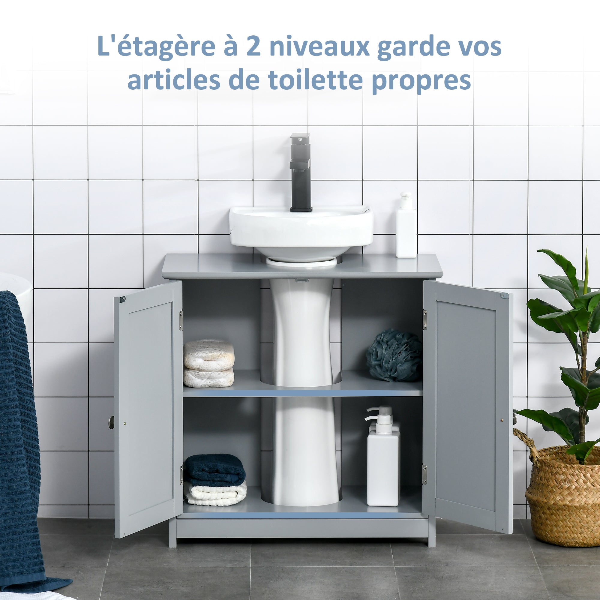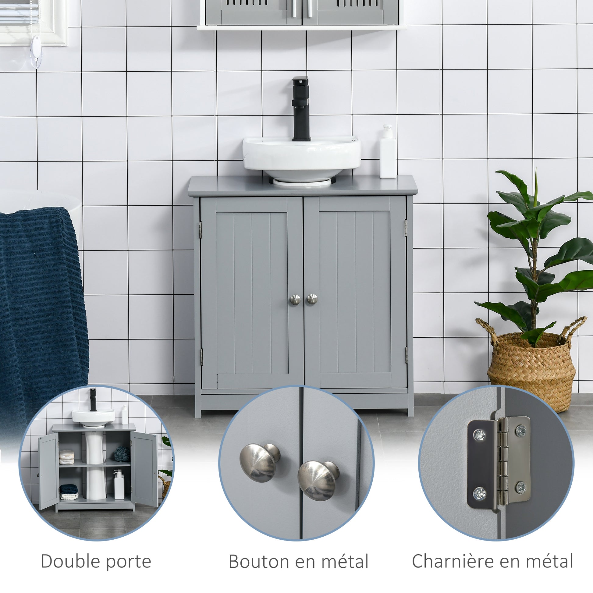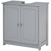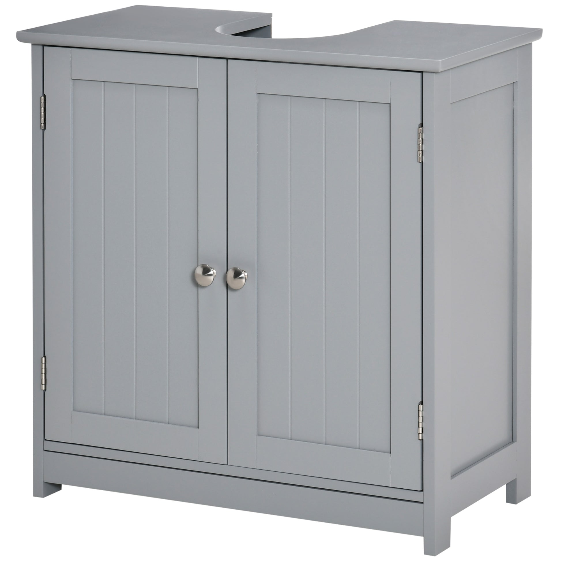 Kleankin Kylpyhuoneen Peilikaappi Altaan Alle - Alttari Kaappi - 2-OVISET Komerot Hyllyllä - Mitat 60L x 30W x 60H cm - Harmaa Puu