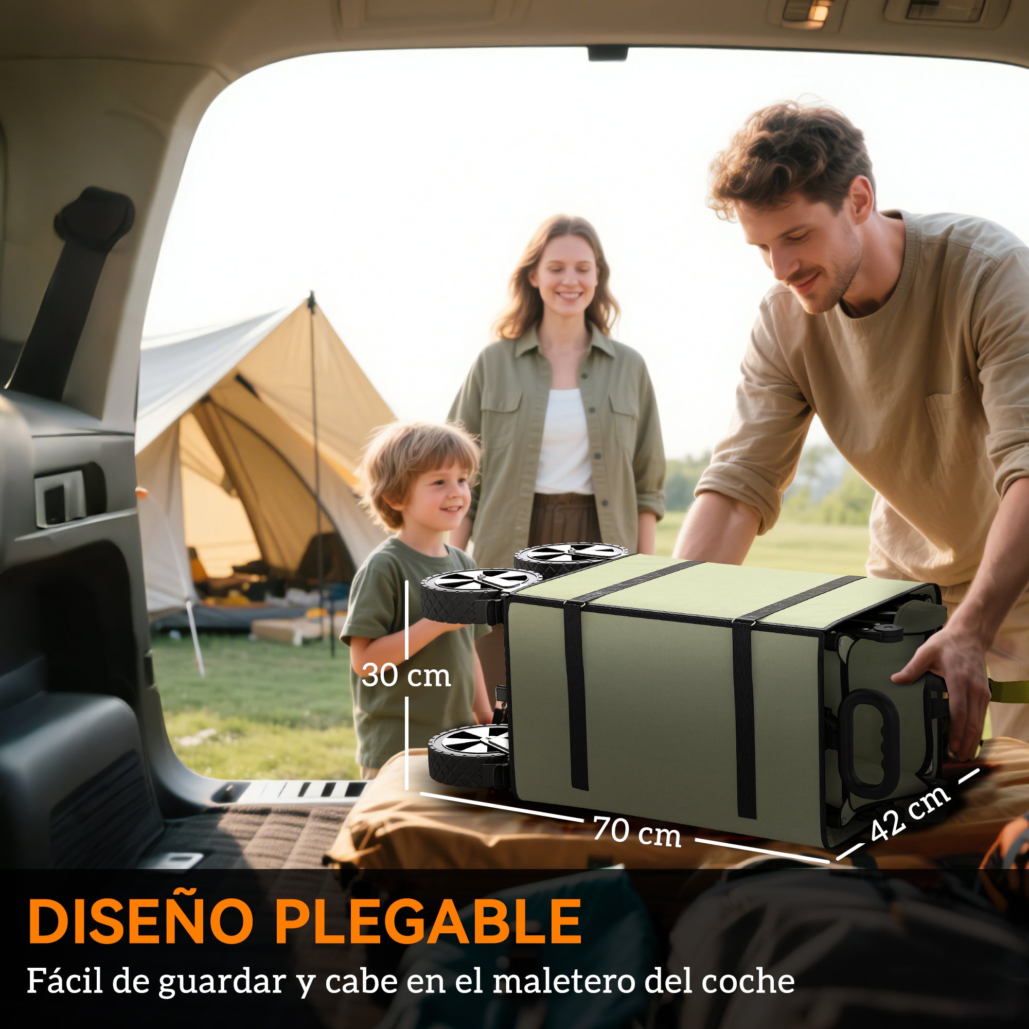 - - NELJÄN MONIPINTAPYÖRÄN AVULLA: Kokoontaitettava kärry sisältää neljä pyörää, jotka on mukautettu kaikille maastoille. Kaksi niistä pyörii 360° estäen kärryn juuttumista vetäessä, ja muissa kahdessa on jarrut, jotka pitävät kuljetuskärryn vakaana tarvittaessa