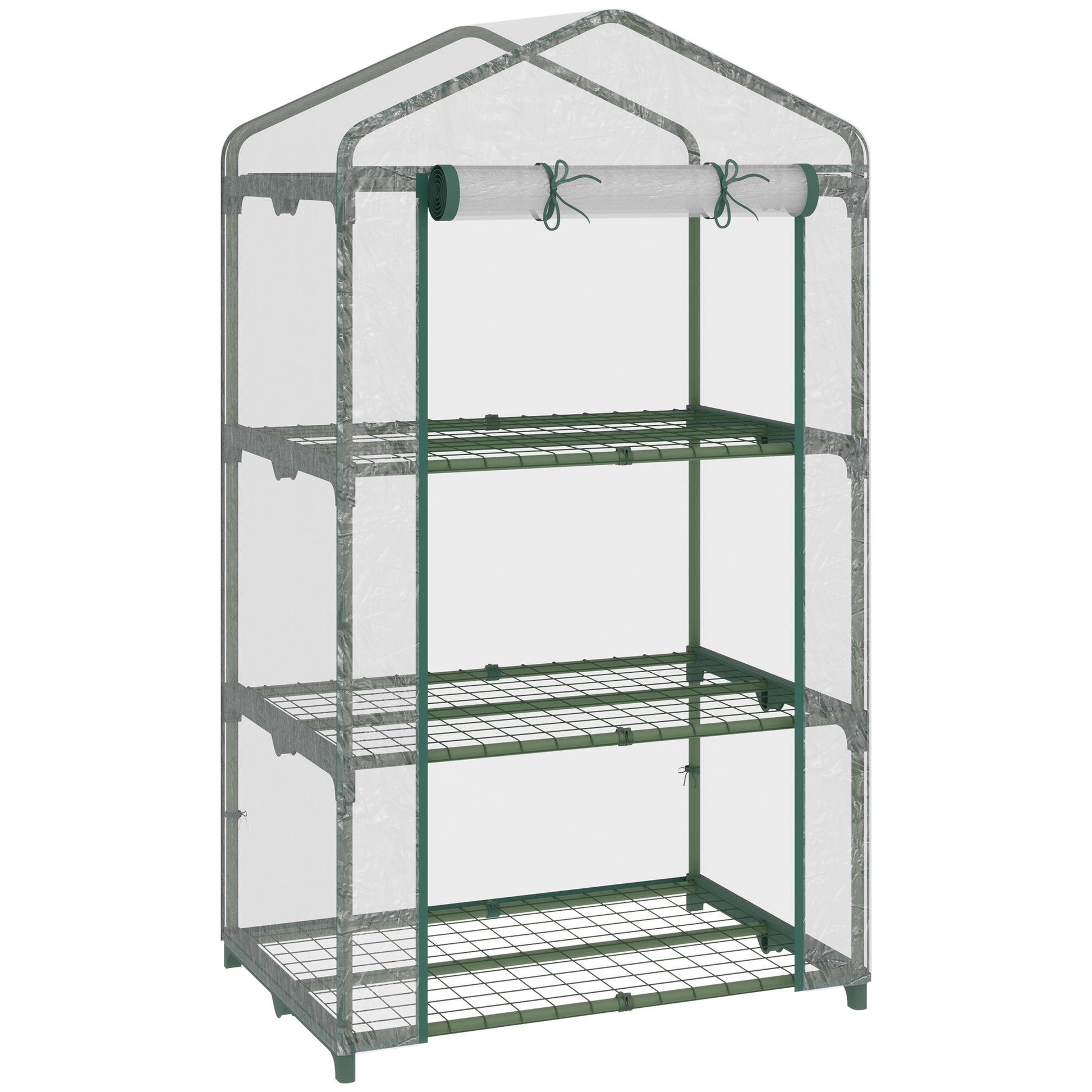 Outsunny 3-tasoinen Puutarhalampun Terassihuone, jossa 3 Hyllyä ja 1 Vetoketjulla varustettu Ovi Kukkien ja Vihannesten Istutukseen 69x49x125 cm Läpinäkyvä