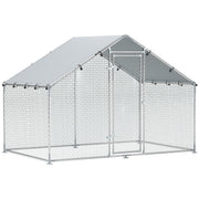 PawHut Kana-aitaus 3x1.7x1.9 m, Kana-aitaus kanoille, kaneille, marsuille ja kasveille, Galvanoidusta teräksestä, lukolla ja vedenpitävällä UV-suojatulla katolla, Ulkokäyttöön tarkoitettu pieneläinkoppi Hopea