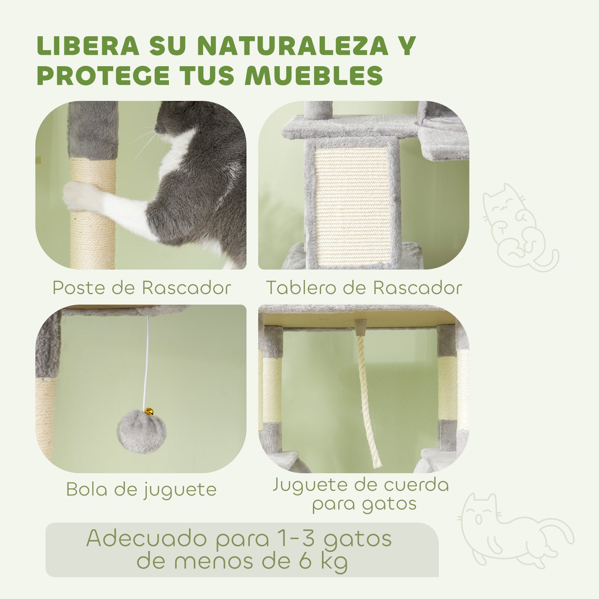 - - LUONNOLLINEN RAAPIMINEN: Varustettu sisal-päällysteisillä pylväillä, raapimislautalla, kahdella leikkipallolla ja köysilelulla, tämä suuri kissan raapimispuu tyydyttää kissojesi raapimisvaatimukset ja suojaa huonekalujasi naarmuilta