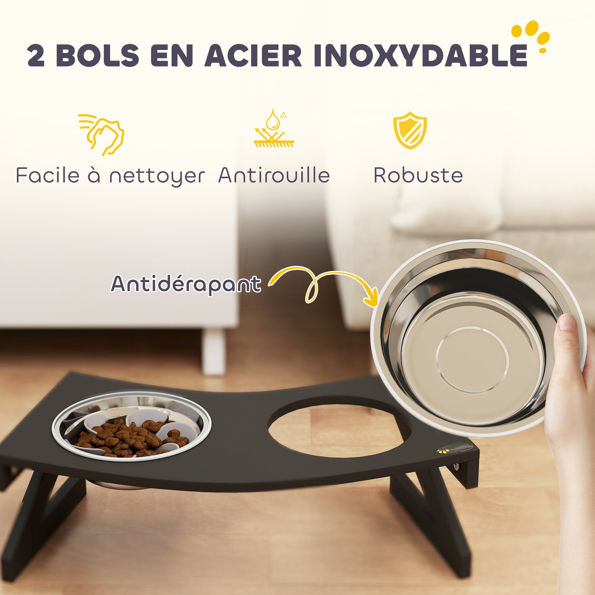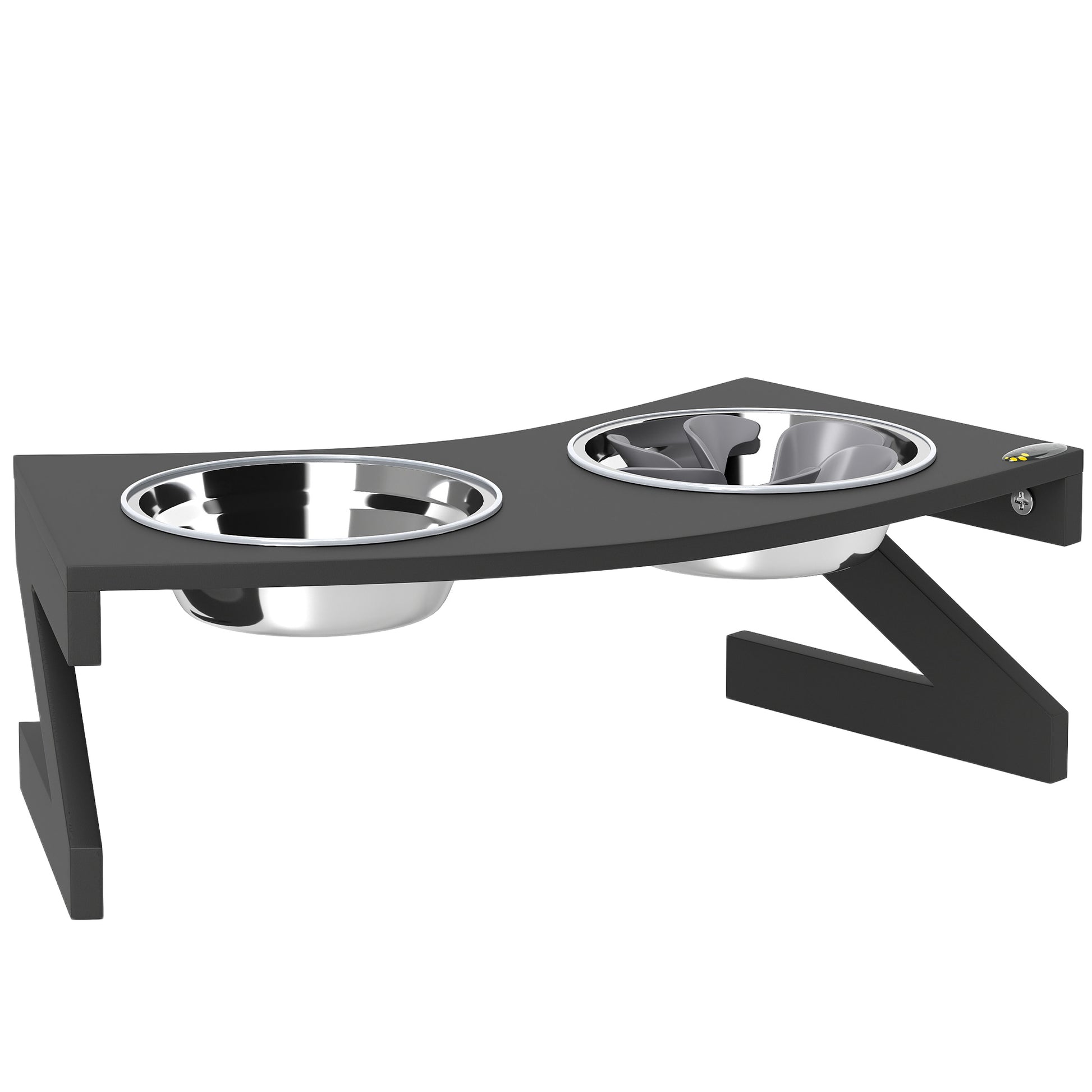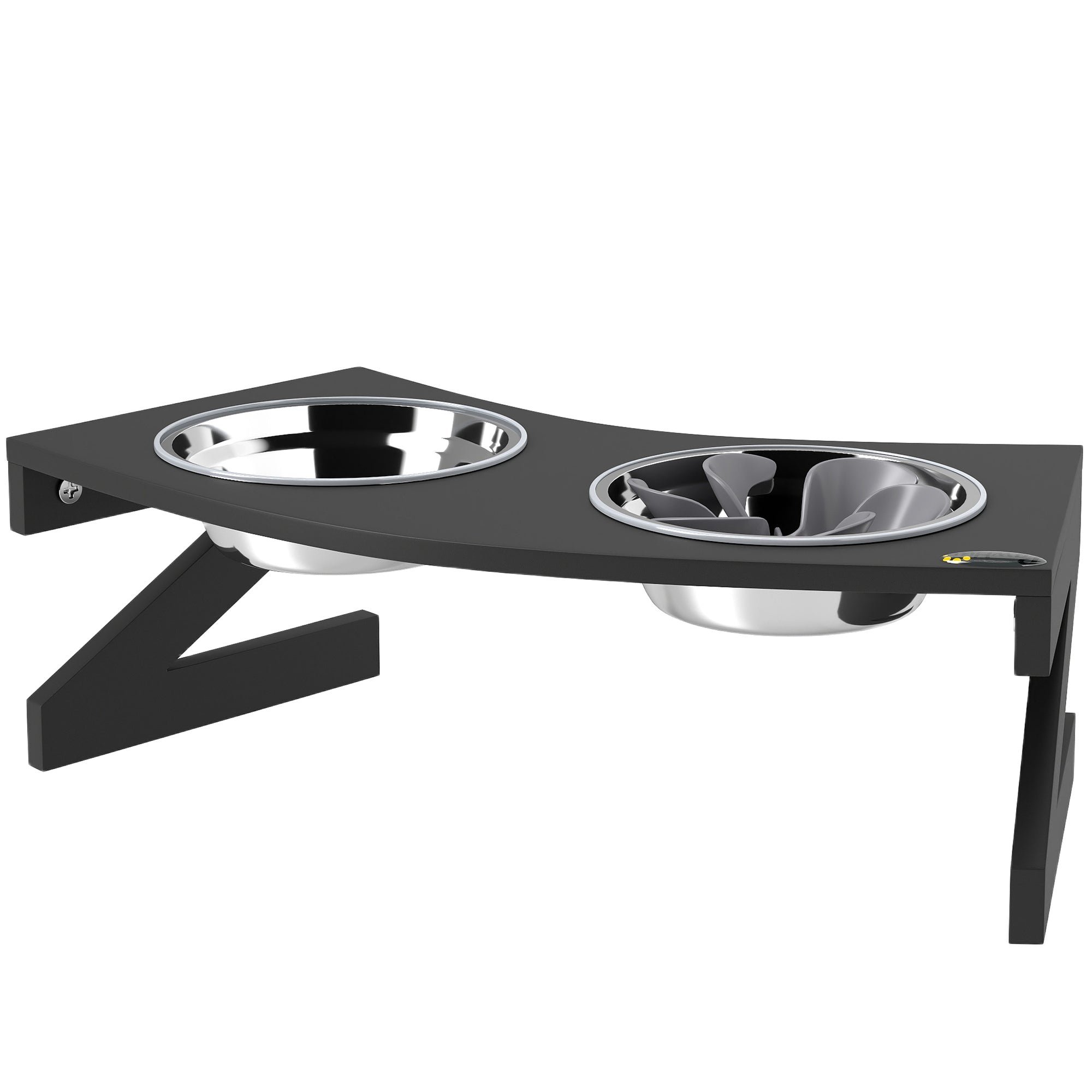 PawHut Nostettava Koiranruokakuppi Tuella, 2 kpl 1L Ruostumatonta Terästä, Hidas Ruokintamatto, Puolipyöreä pinta, pienille ja keskikokoisille koirille, musta