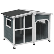 PawHut Pienille Koira Pieni Puinen Koirahäkki Avoin Asfalttikatto Akryylinen Etuovi Verholla ja Irrotettavalla Pohjalla 101x66.5x70.5 cm Tummanharmaa