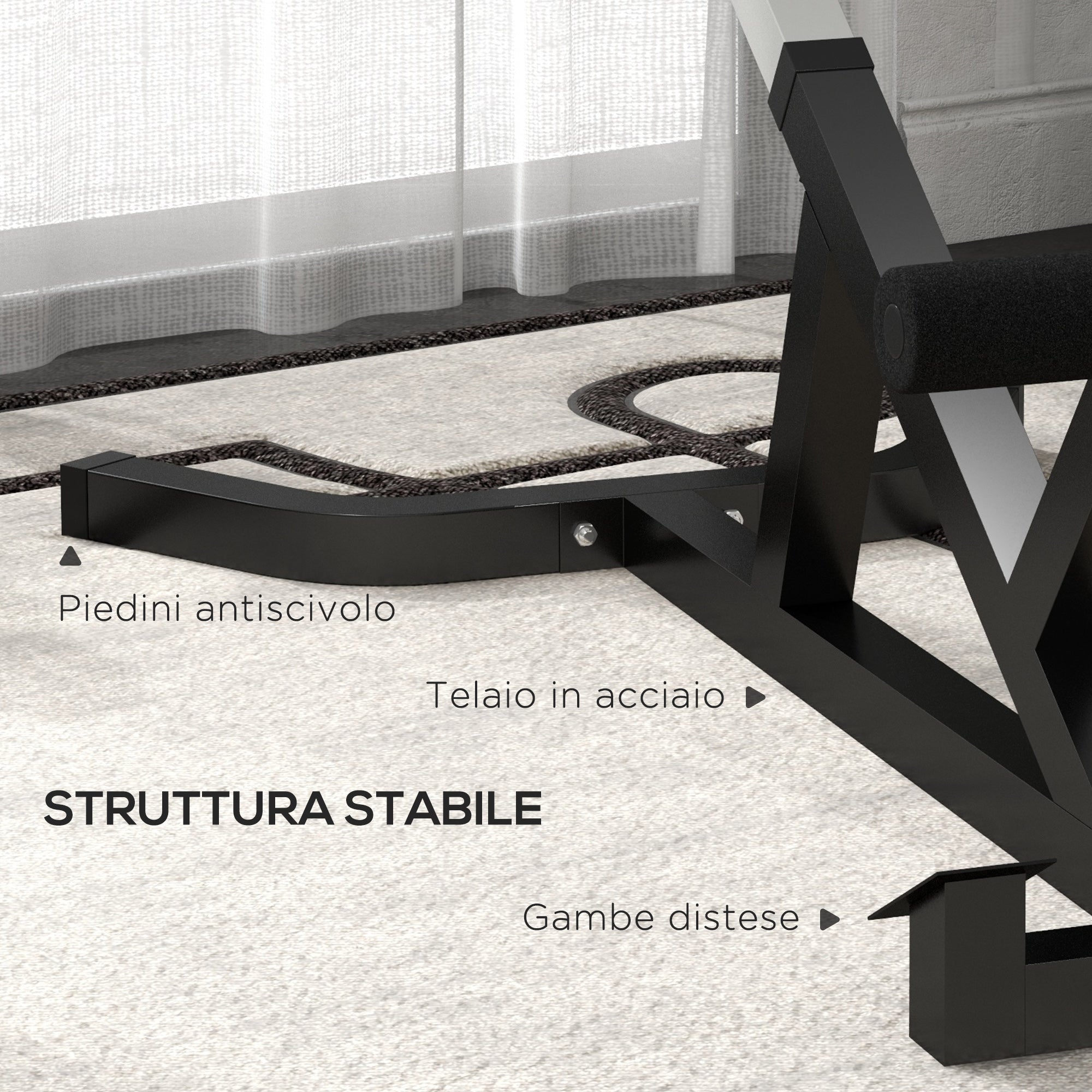 SPORTNOW Roman Chair paksulla pehmusteella ja kolmio teräs PU-rakenteella, 126x70x67-84 cm, Musta