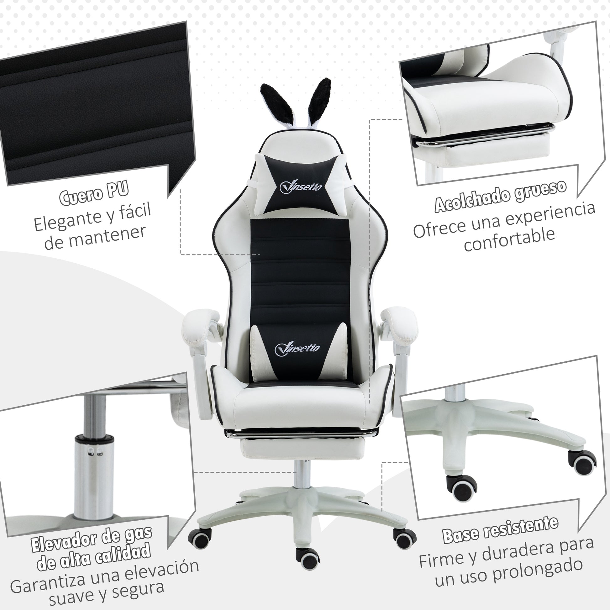 Vinsetto Ammattimainen Pelituoli Kilpaileva Kääntyvä Tuoli Säädettävällä Korkeudella, 135° Keinottava Päänyhte ja Jalkatuki, Toimisto-opiskeluun 65x63x136-142 cm Musta-valkoinen
