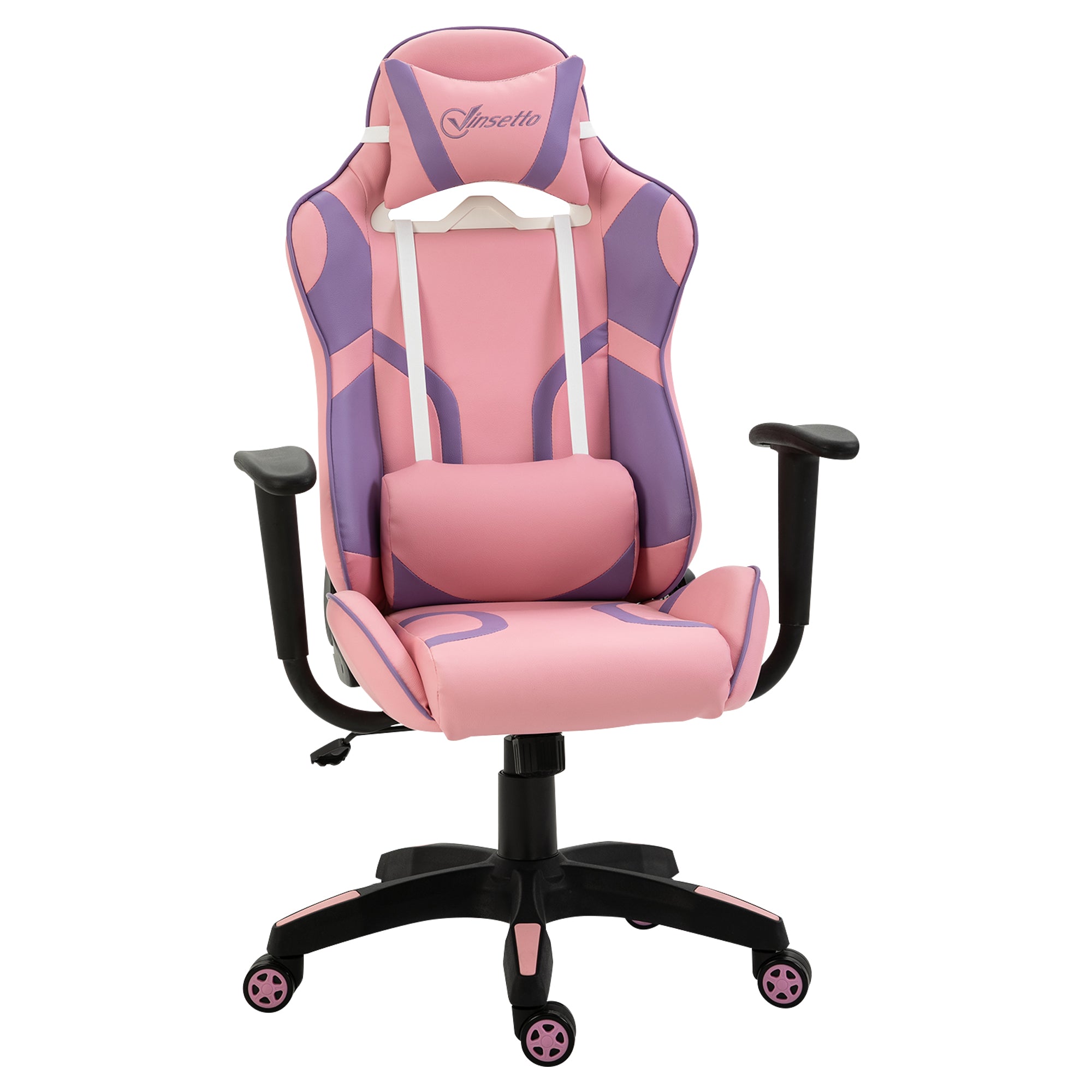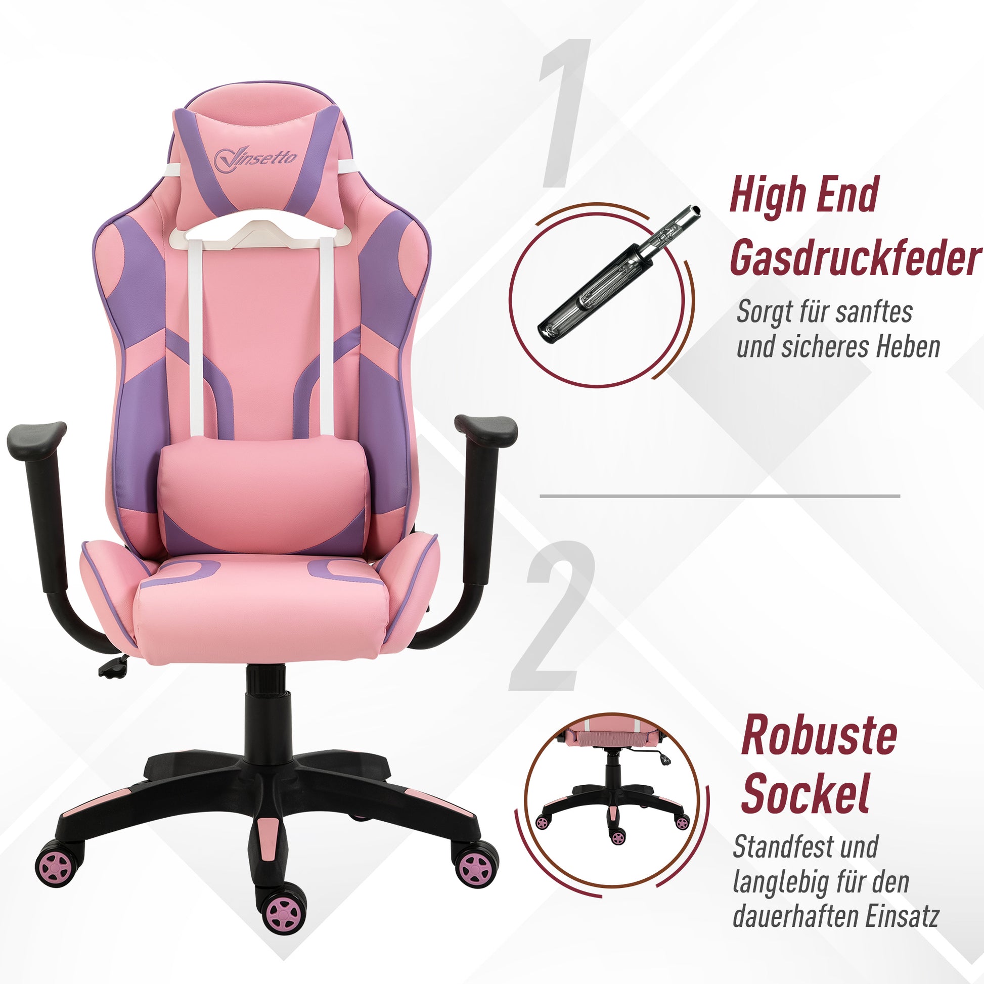 Vinsetto Ergonominen Pelituoli Toimistotuoli Kääntyvä Tuoli Säädettävä Hierontatyyny Alaselälle Korkeudensäätö Vaaleanpunainen ja Violetti 69x56x125.5 cm