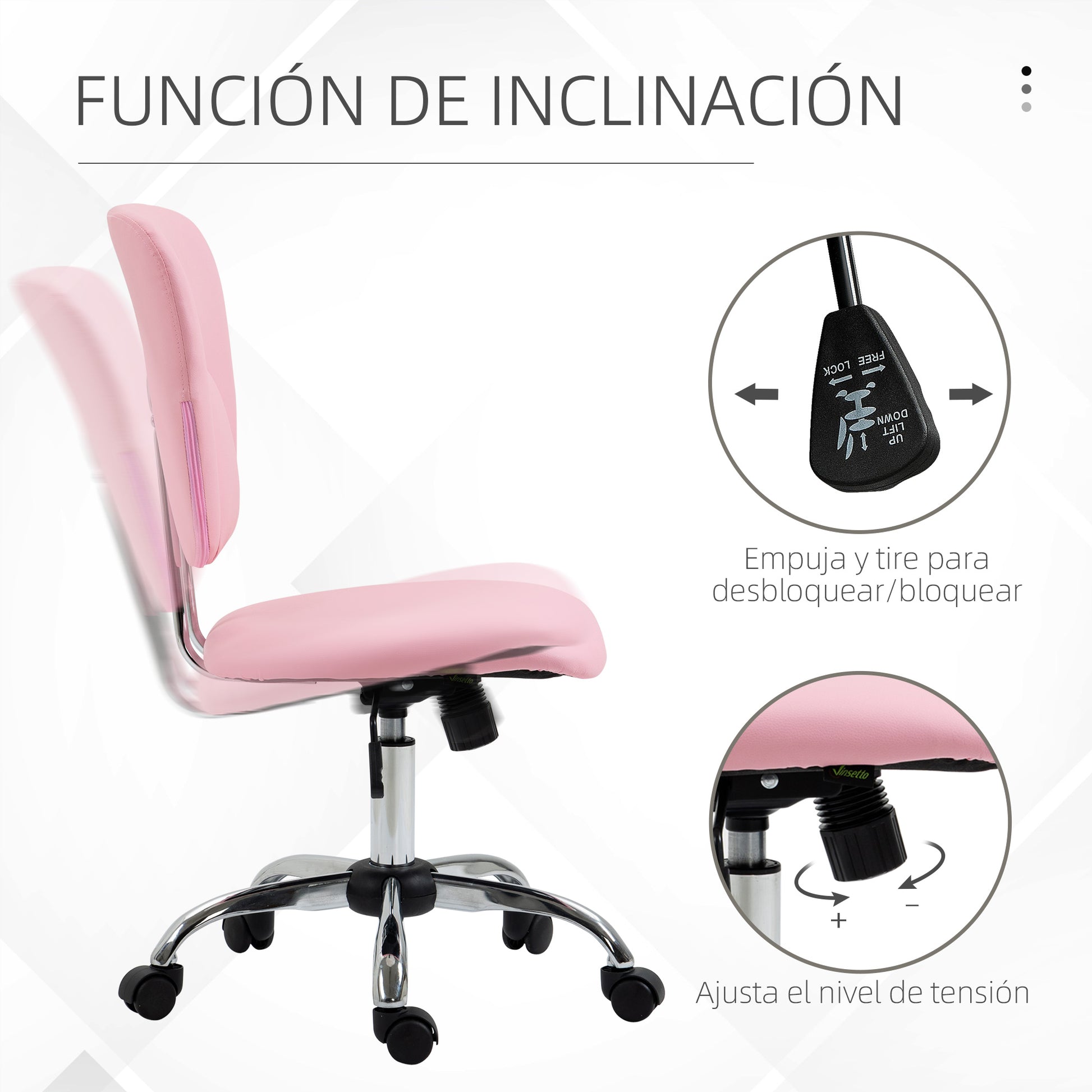 Vinsetto Ilman Käsinojia Oleva Toimistotuoli Nuorille, Säädettävä Korkeus ja Kallistus, Kanto 120 kg, 50x54x87.5-96.5 cm Vaaleanpunainen