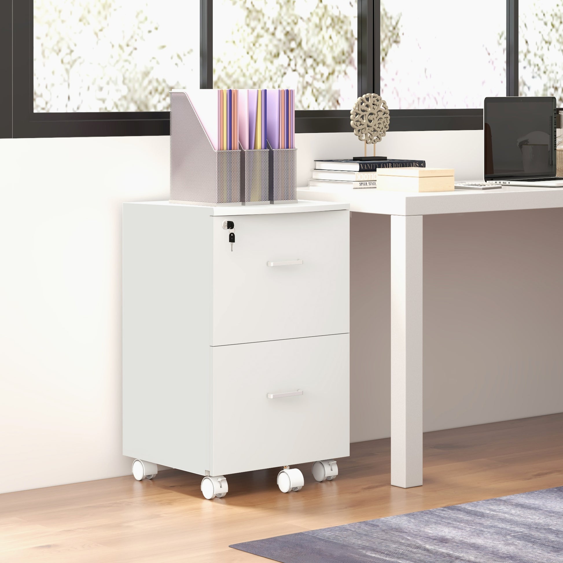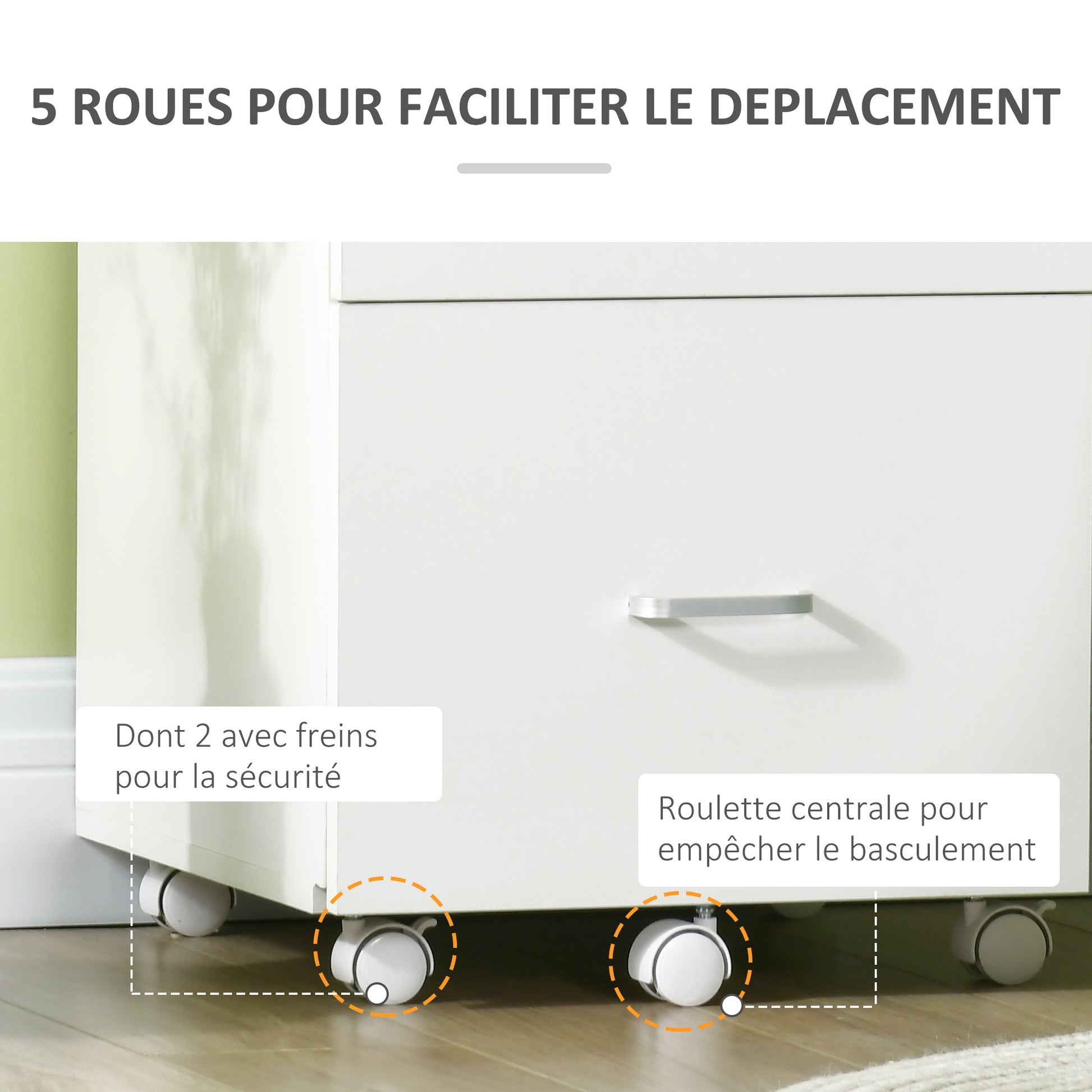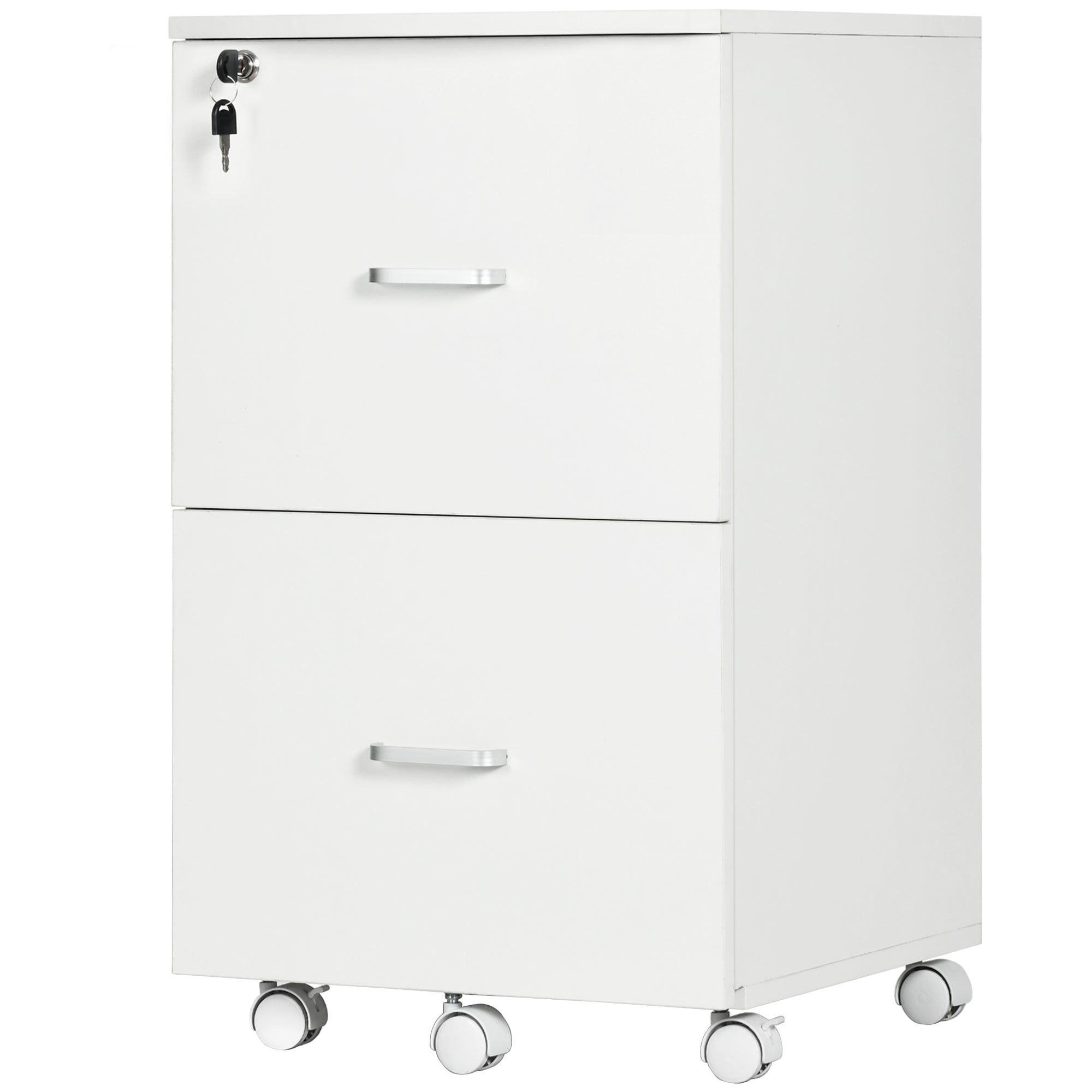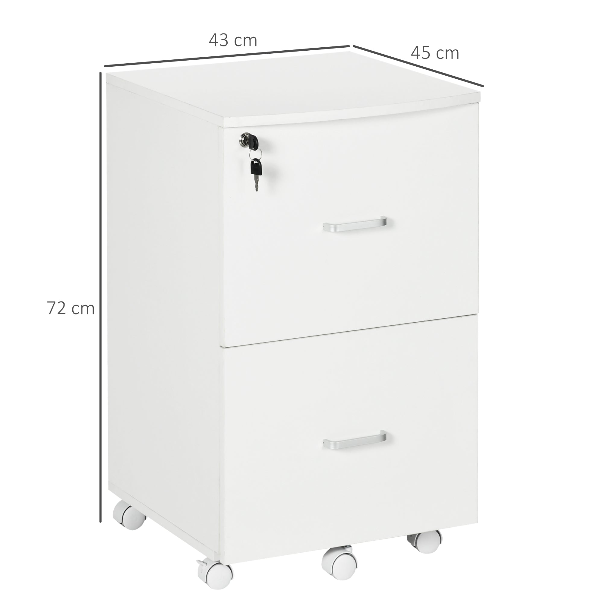 Vinsetto Pyörällinen Toimistotason Säilytyslaatikko, 2 Lukittavaa Laatikkoa MDF Lastulevystä, Mitat 43L x 45W x 72H cm Valkoinen