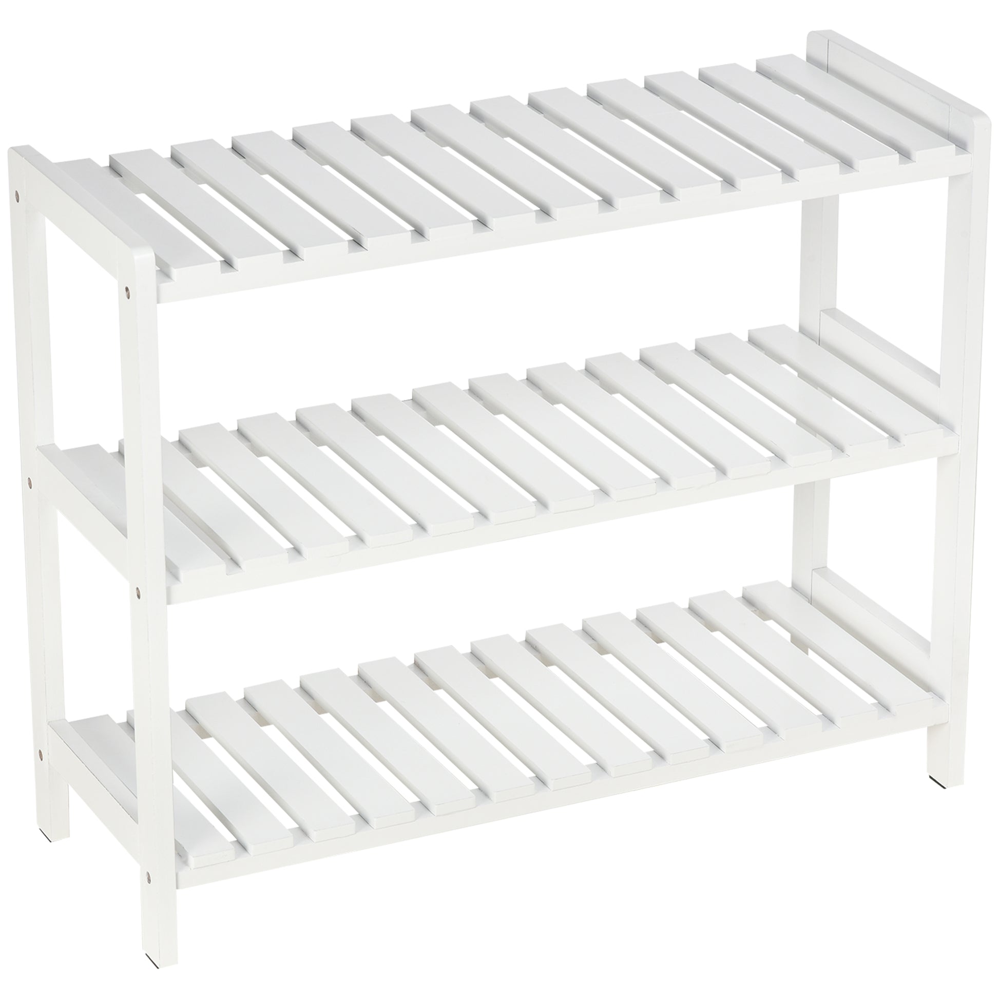 HOMCOM Puinen Kengäteline 3-Taso 9 Paarille Kenkiä Eteiseen 70x26x57,5 cm Valkoinen