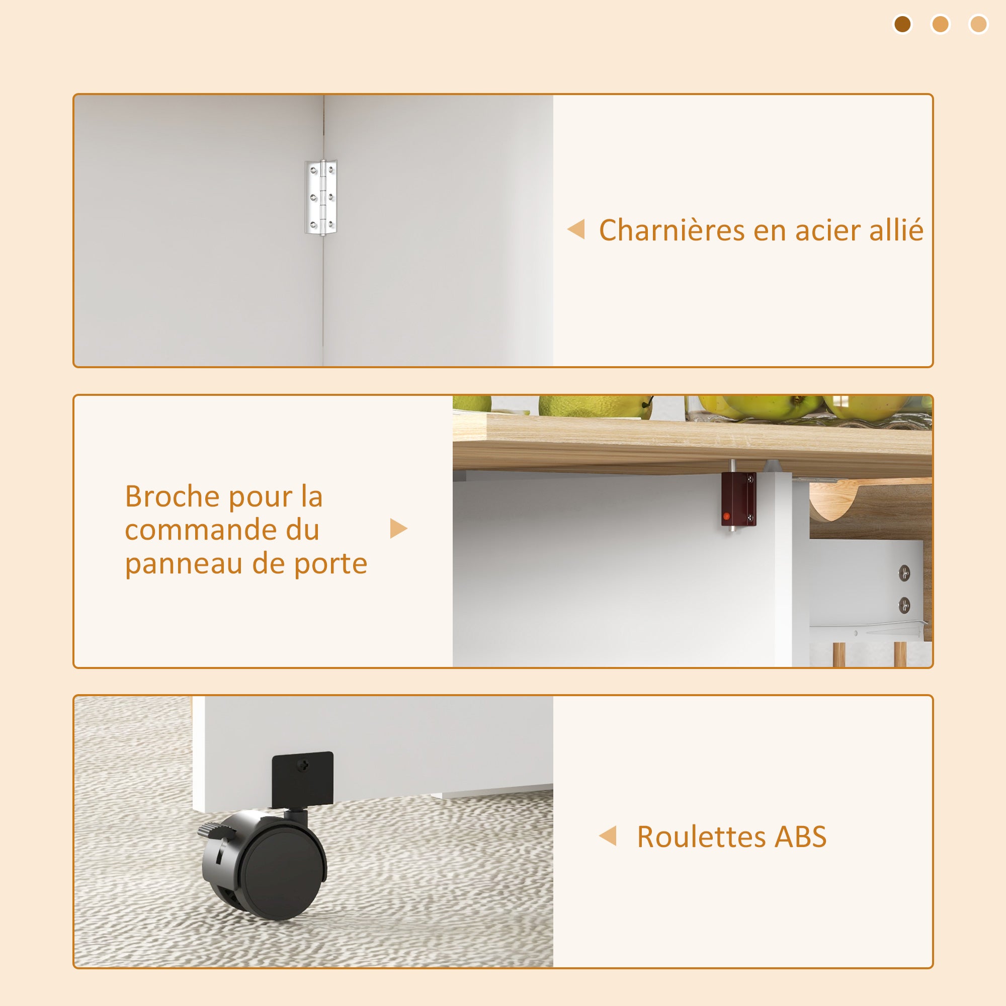 Table à manger pliante HOMCOM sur roulettes avec rangement, 2 tiroirs et 1 armoire 76 x 140 x 74 cm en bois gris et naturel
