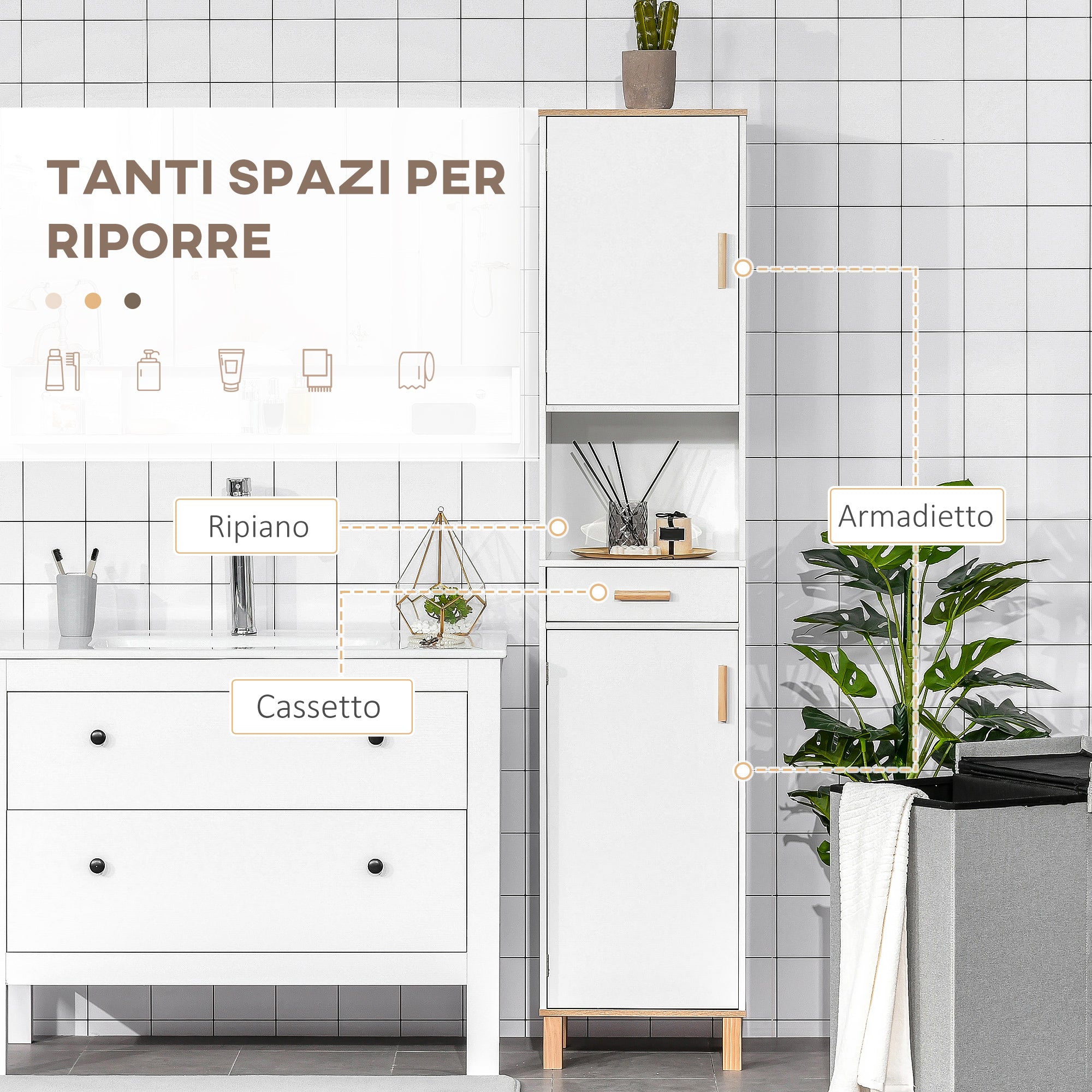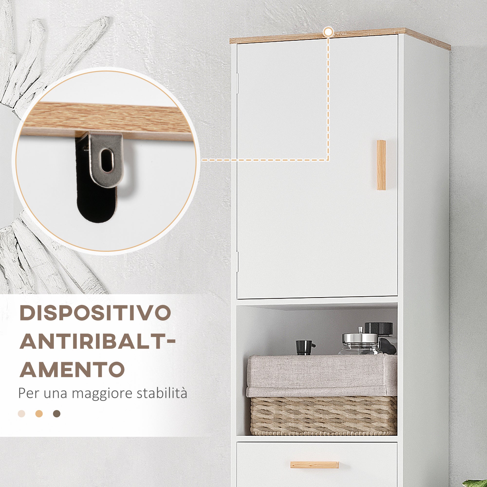 Armoire de Salle de Bain Compacte en Bois kleankin, Armoire Haute avec Caissons et Tiroir, 39x30x180 cm, Blanc