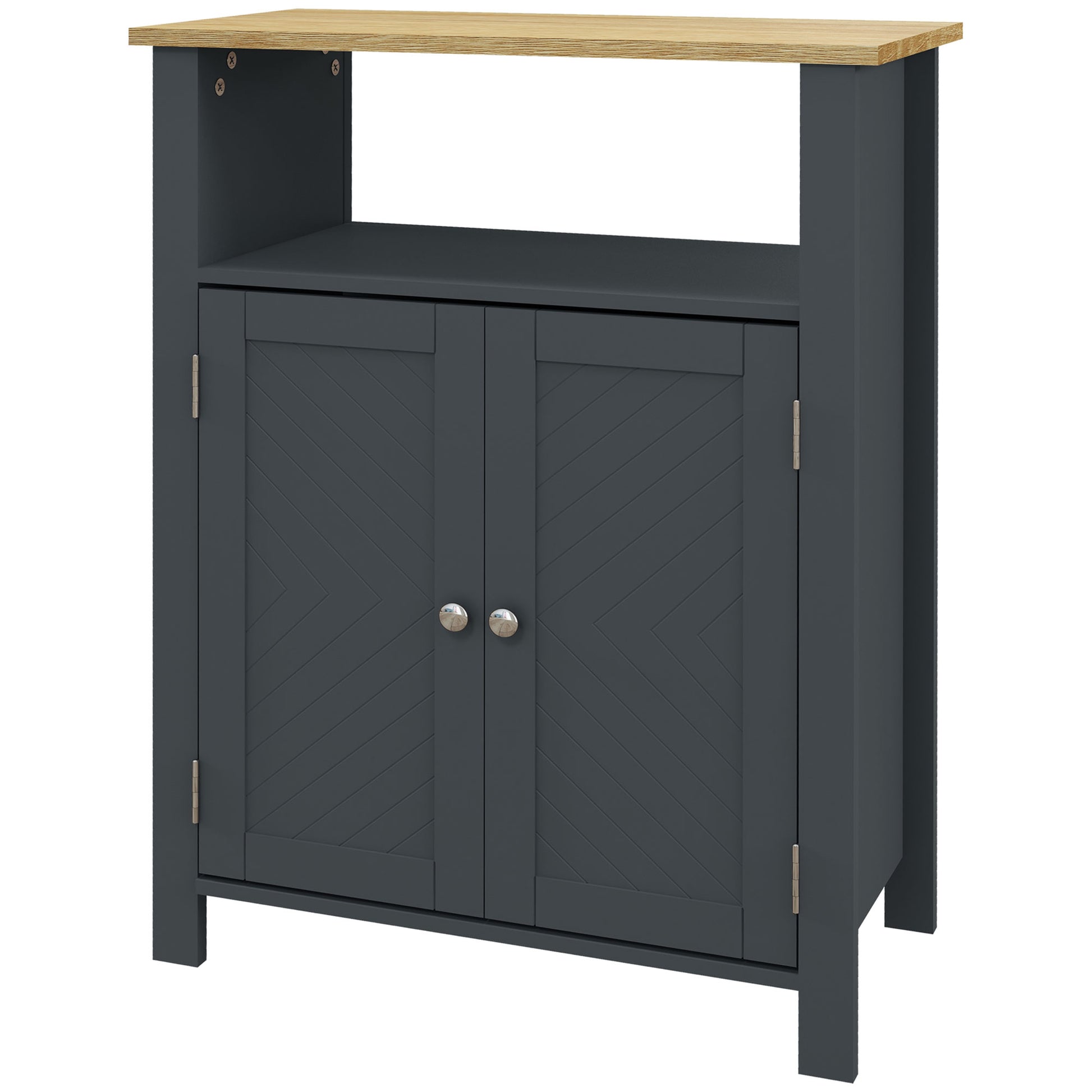 Armoire de Salle de Bain kleankin avec 3 Étagères en MDF et Aggloméré avec Étagère Intérieure Ajustable et 2 Portes Relevées, 60x30x80,5 cm, Gris et Couleur Bois