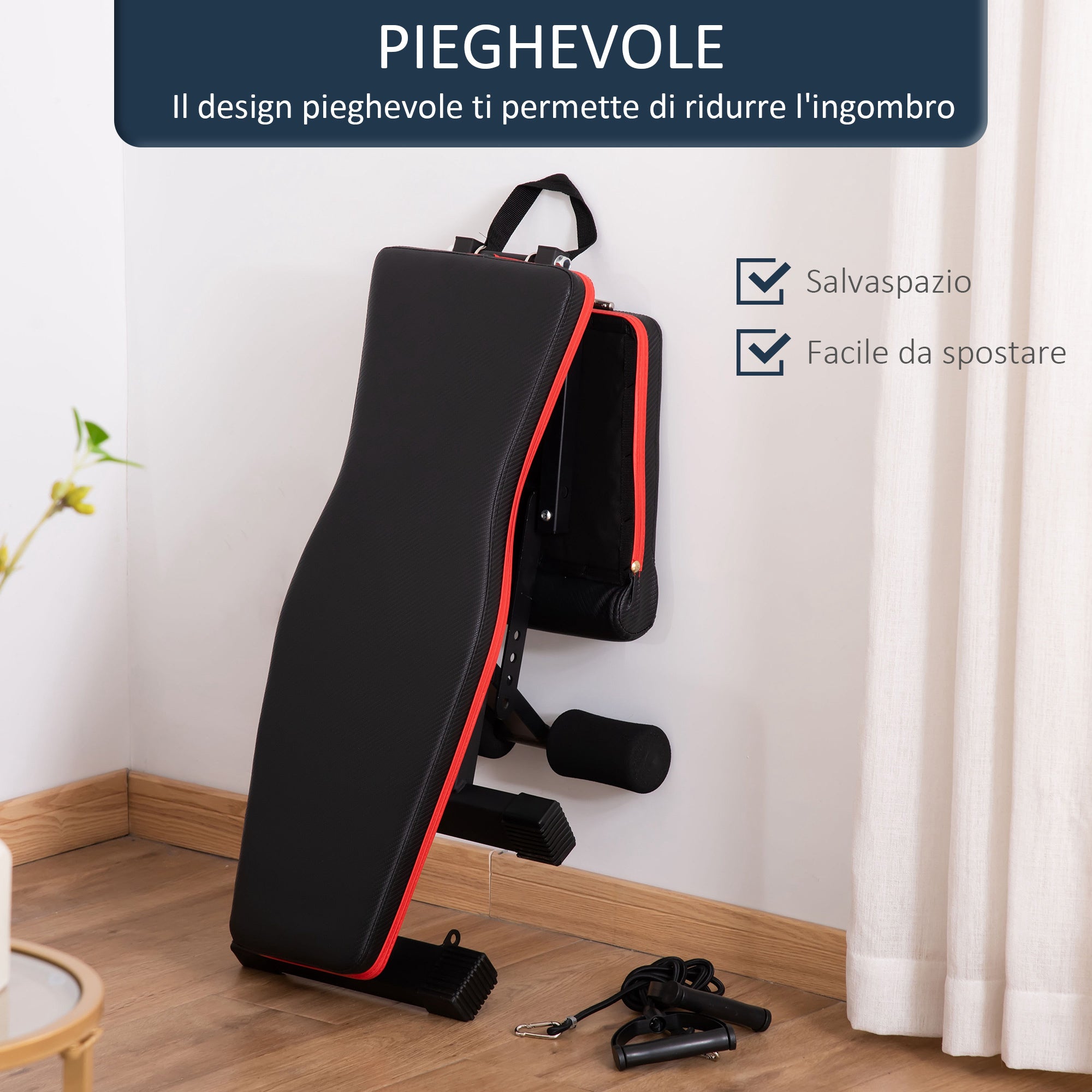 Banc Multifonction HOMCOM 2 en 1 avec Inclinaison Réglable, Banc Rembourré pour Abdominaux et Haltères avec Cords Élastiques pour Maison et Salle de Sport, Noir