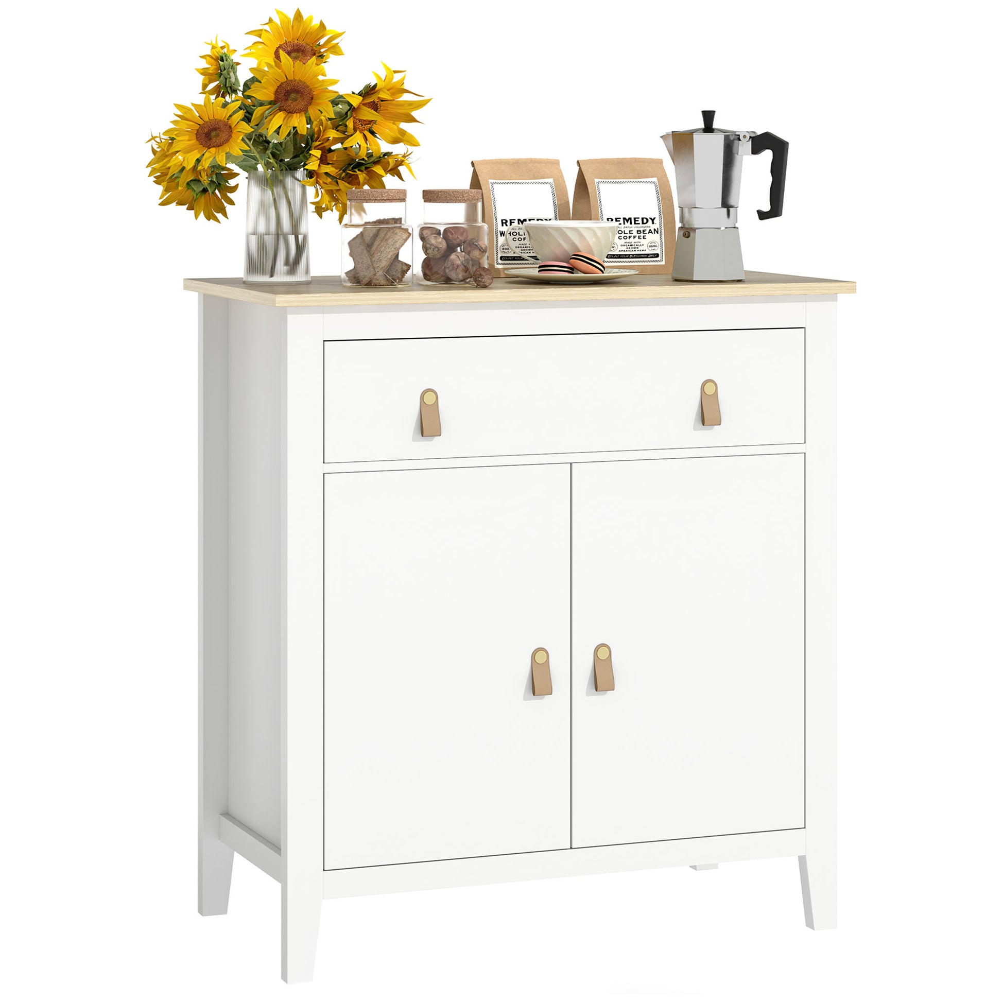 Buffet HOMCOM 2 Portes, Buffet Moderne pour Salon avec Tiroir, Étagère Réglable et Poignées PU, Mobilier d'Aide pour Salle à Manger ou Couloir 80x40x90 cm Blanc et Chêne