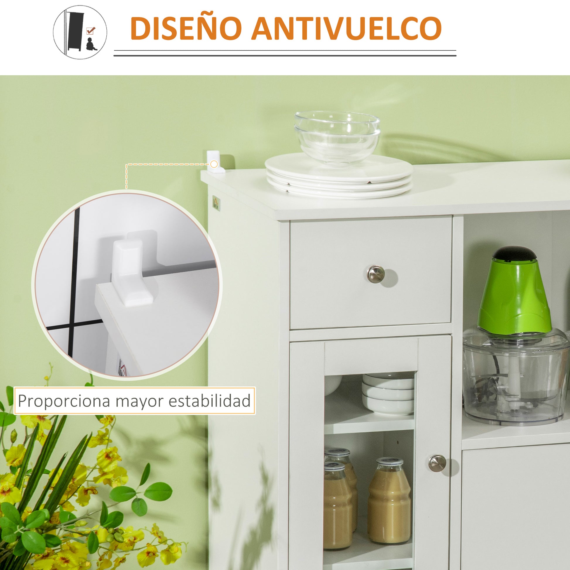 Buffet HOMCOM Blanc - Buffet de Cuisine Moderne avec Porte en Verre, Tiroir, Étagère Ouverte et Étagères Réglables, Unité de Rangement pour Salle à Manger et Salon 80x30x82 cm Blanc