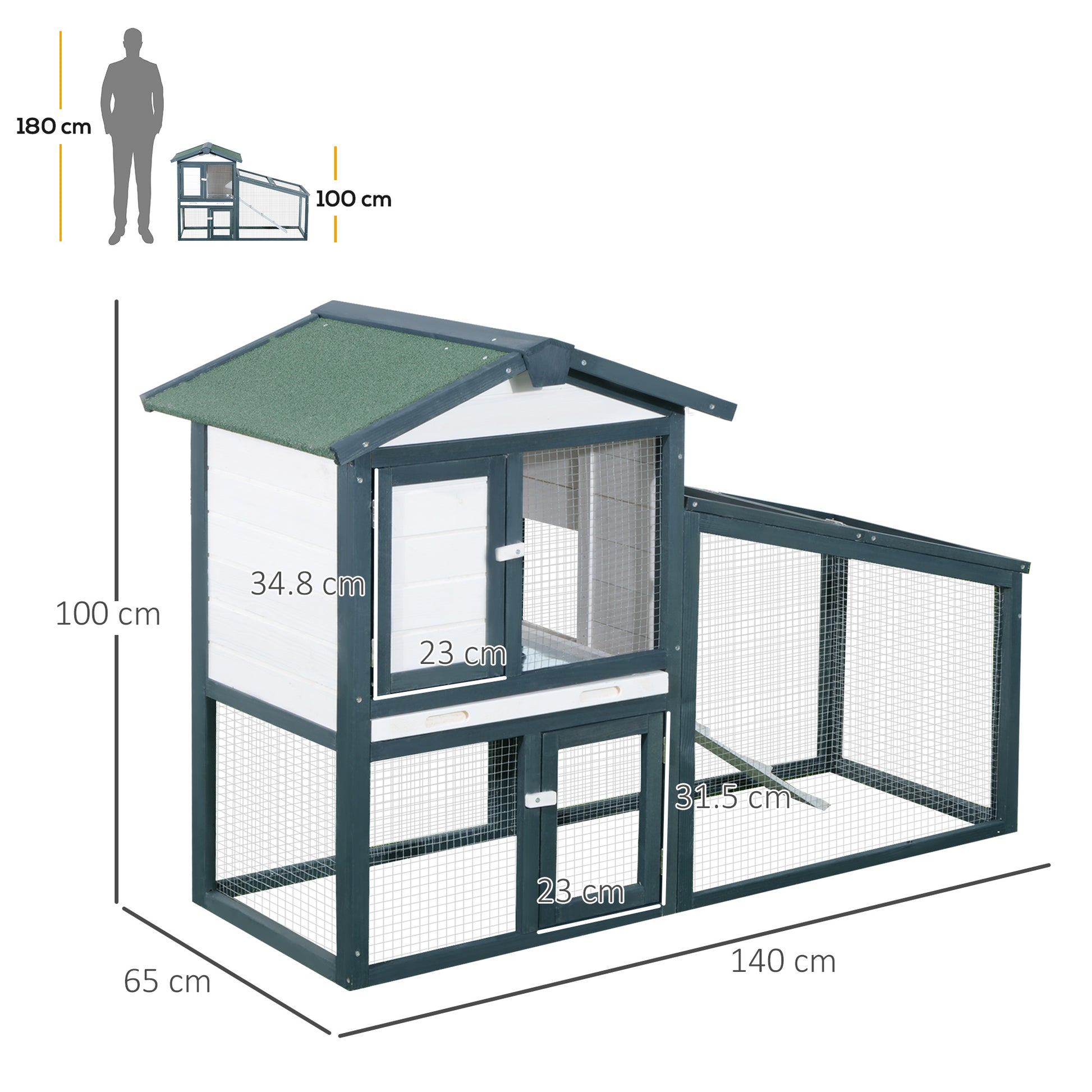 Cage pour Lapins et Petits Animaux PawHut en Bois 2 Étages en Épicéa Double Porte 140x65x100cm Vert et Blanc