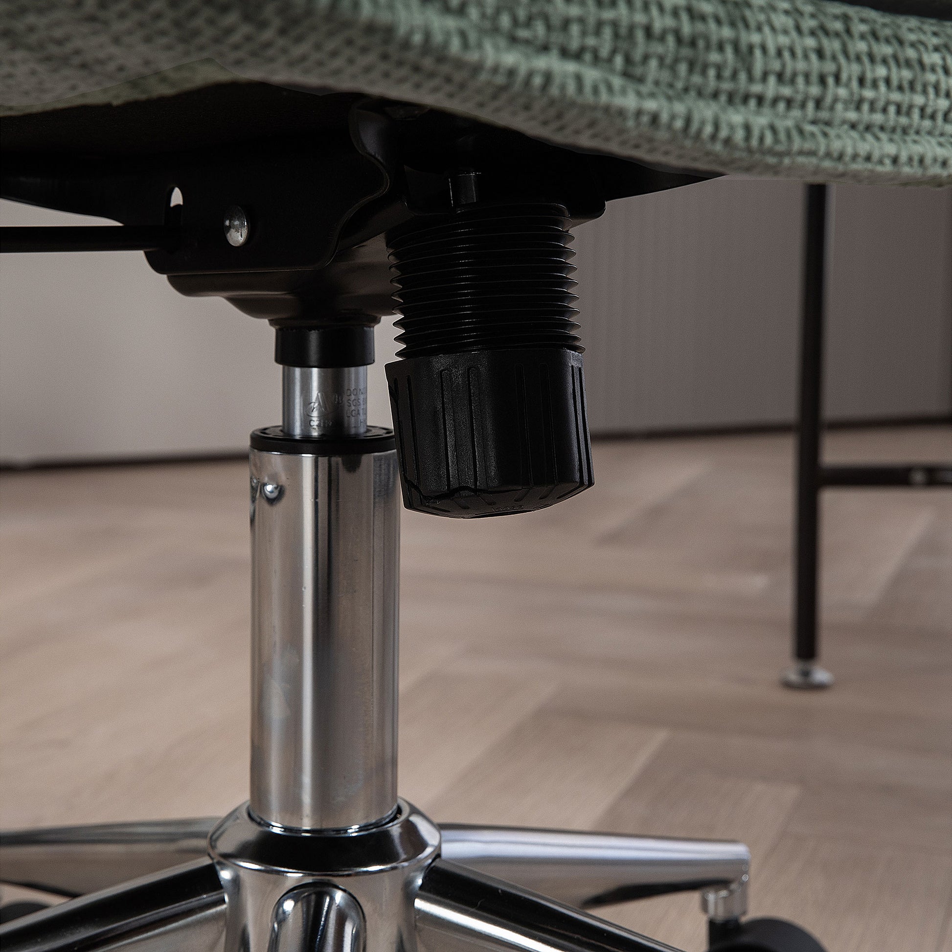 - - DESIGN : Chaise de bureau ergonomique au style vintage de couleur verte qui allie sobriété et élégance - Base en chrome à 5 branches avec 5 roues multidirectionnelles - Son dossier et son siège en tissu effet lin rembourré embelliront l'espace intérieur de votre choix : chambre, bureau, salon, etc.