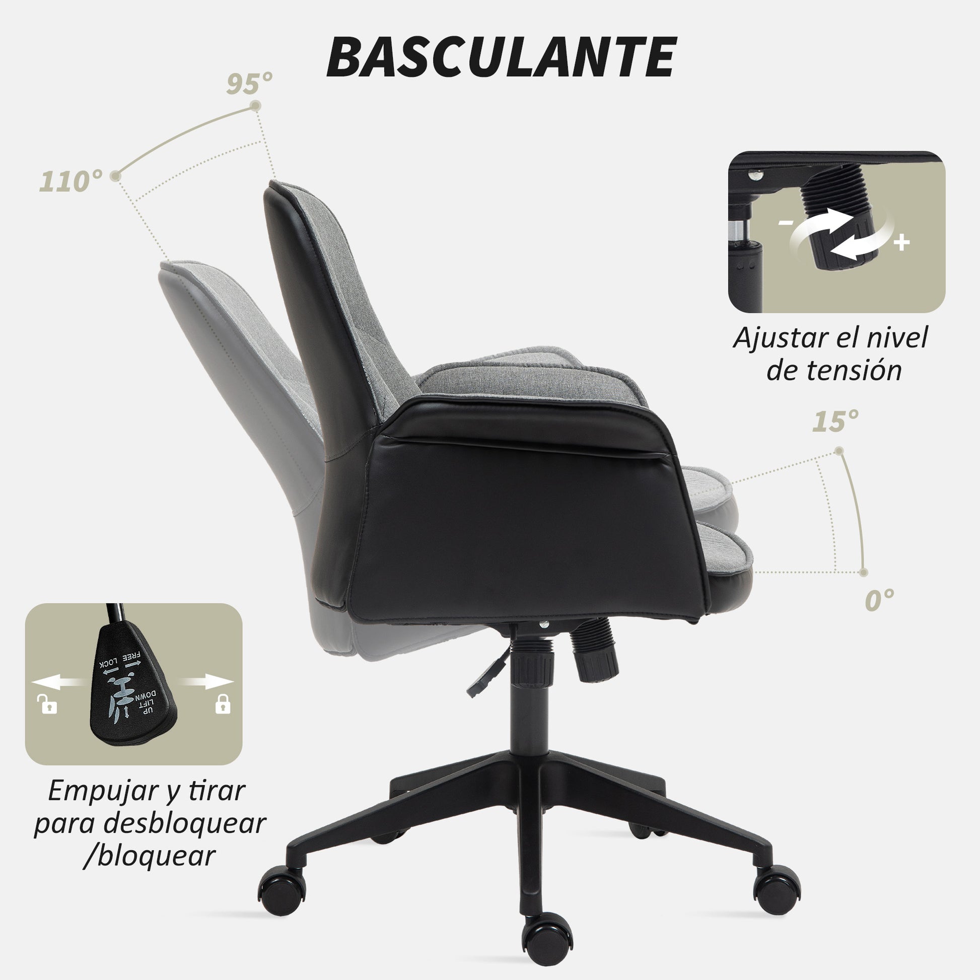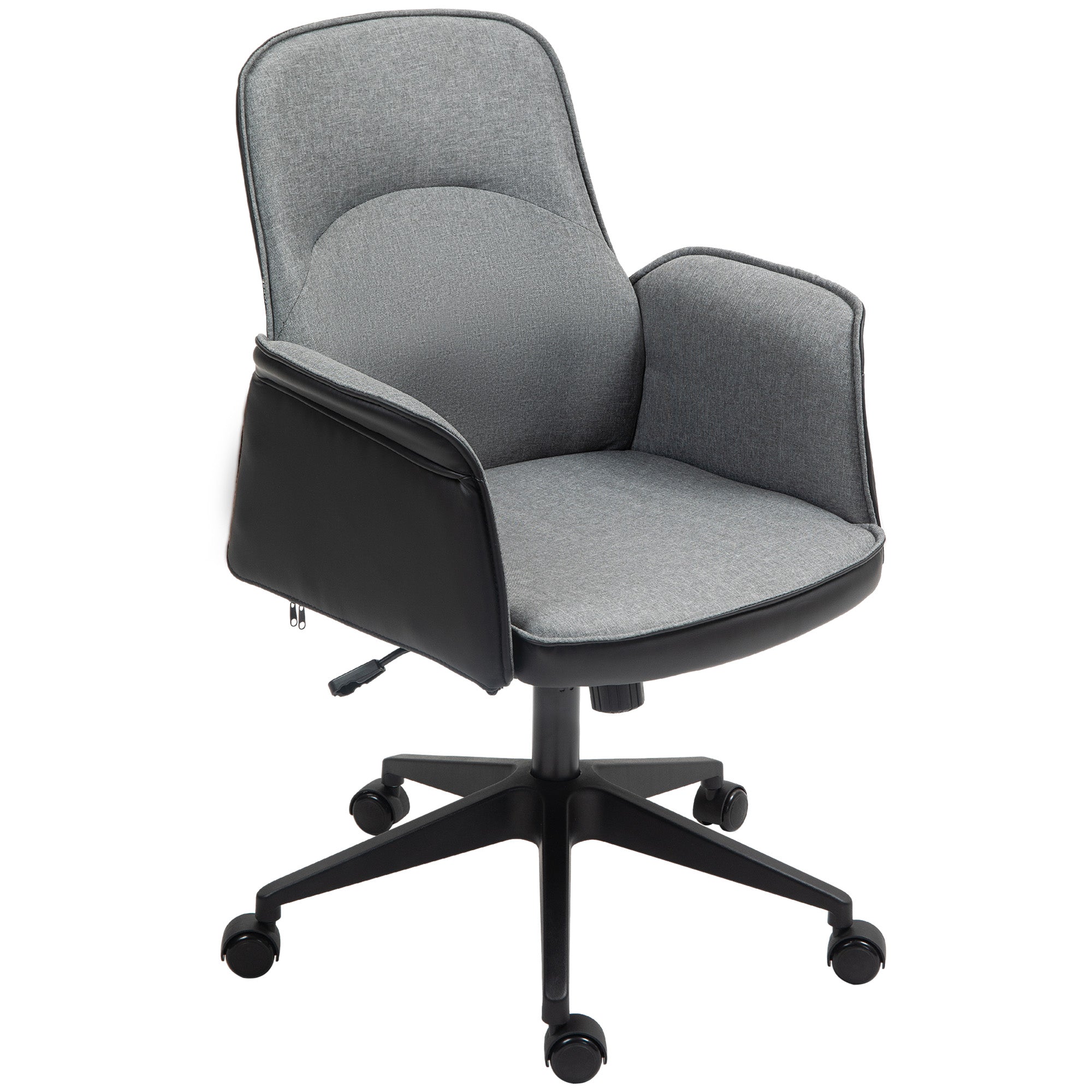 Chaise de Bureau HOMCOM Pivotante avec Inclinaison Revêtue en PU et Lin, Hauteur Réglable, Accoudoirs, Charge 120 kg, Gris et Noir