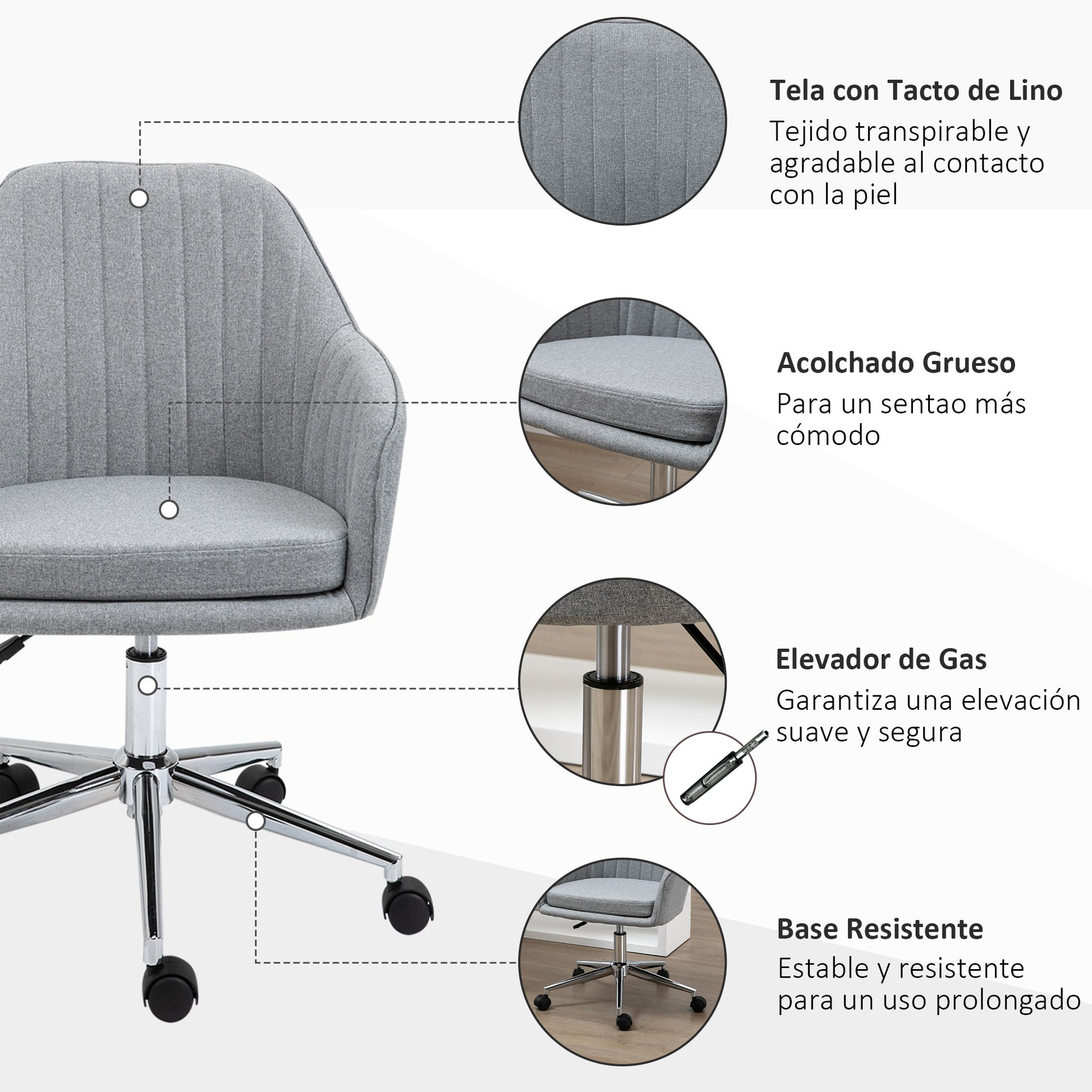 Chaise de Bureau Vinsetto avec Hauteur Réglable et Pivotante pour Bureau Informatique, Élégante, Charge 120 kg, 61x59x86-96 cm Gris