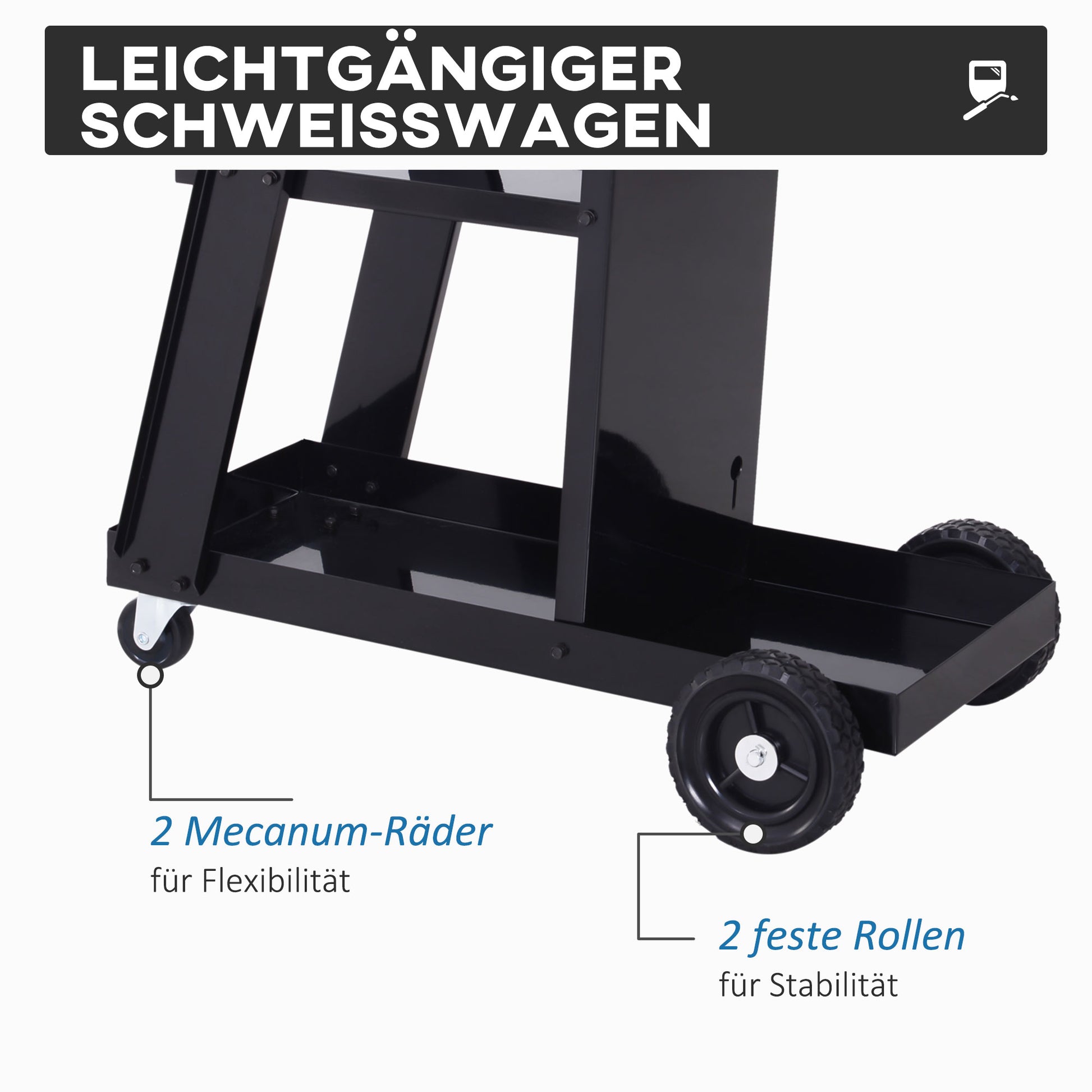 Chariot de soudage DURHAND, Chariot mobile avec 3 étagères, Support de bouteille de gaz avec chaîne de sécurité, Chariot pour machines à souder, Soudage à l'arc argon Noir