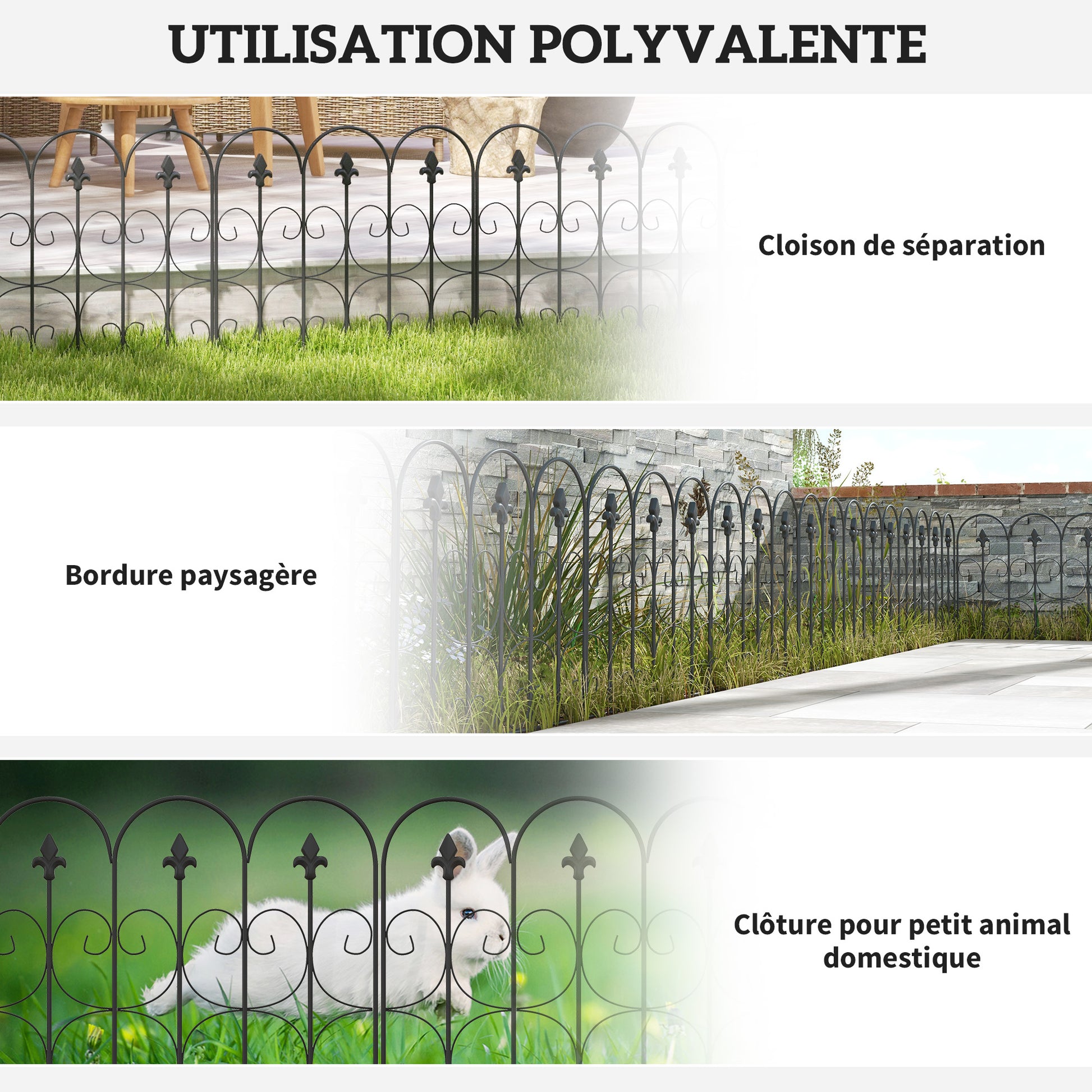 - - PRÊT POUR L'EXTÉRIEUR : Fabriquée en métal et revêtue de peinture durable, cette clôture de jardin décorative est préparée pour résister aux intempéries extérieures et aux éléments tels que la pluie, la poussière et les déjections.