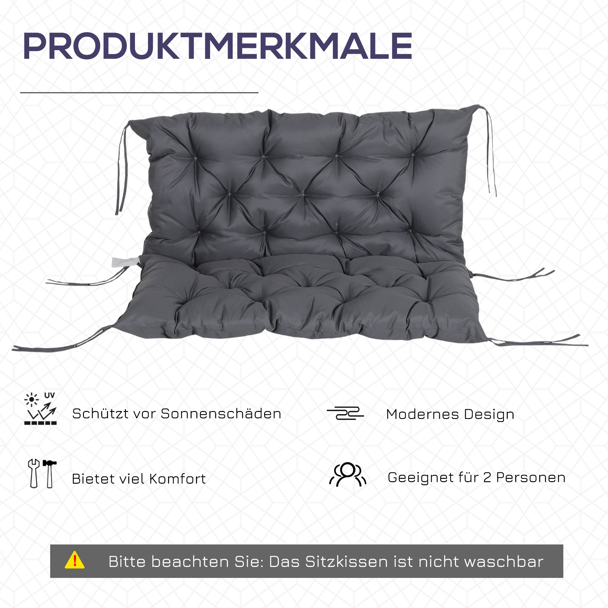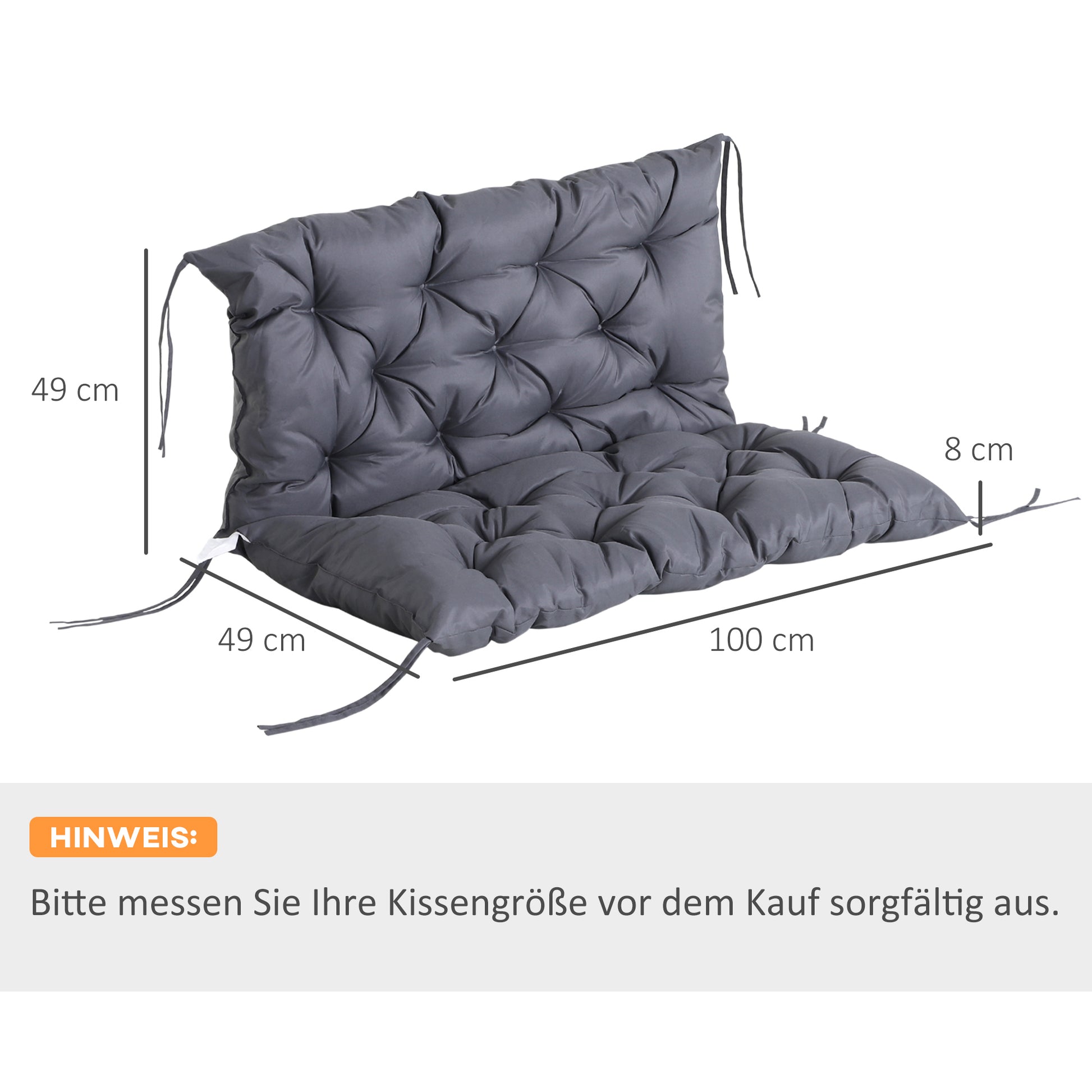 Coussin pour banc à 2 places Outsunny 100 x 98 x 8 cm avec sangles, coussin de dos pour intérieur/extérieur, rembourrage pour banc de jardin, mobilier de jardin, balançoires gris foncé