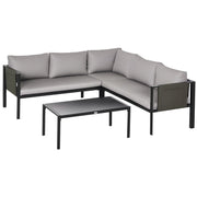 Ensemble de jardin 4 pièces Outsunny avec 2 canapés deux places, fauteuil d'angle et table basse en verre trempé, gris et noir