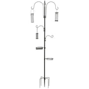 Ensemble de Station de Nourrissage pour Oiseaux PawHut en Acier Hauteur 208 cm avec 4 Crochets, Abreuvoir et Nourrisseur Complet pour Oiseaux Noir