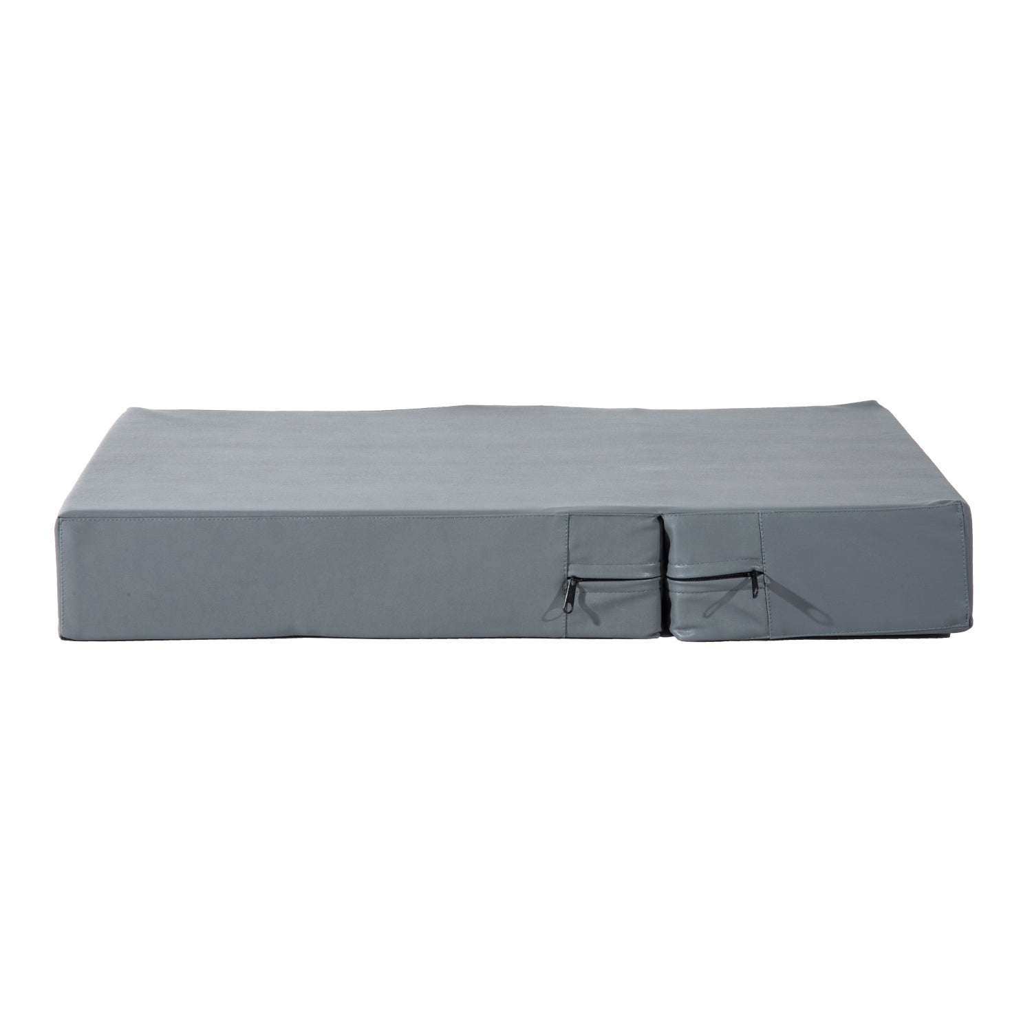 - - Dimensions globales : L45 x l39 x H20 cm, Couleur : Gris, Matériau : Cuir PU, Mousse, Poids : 0,81 kg.