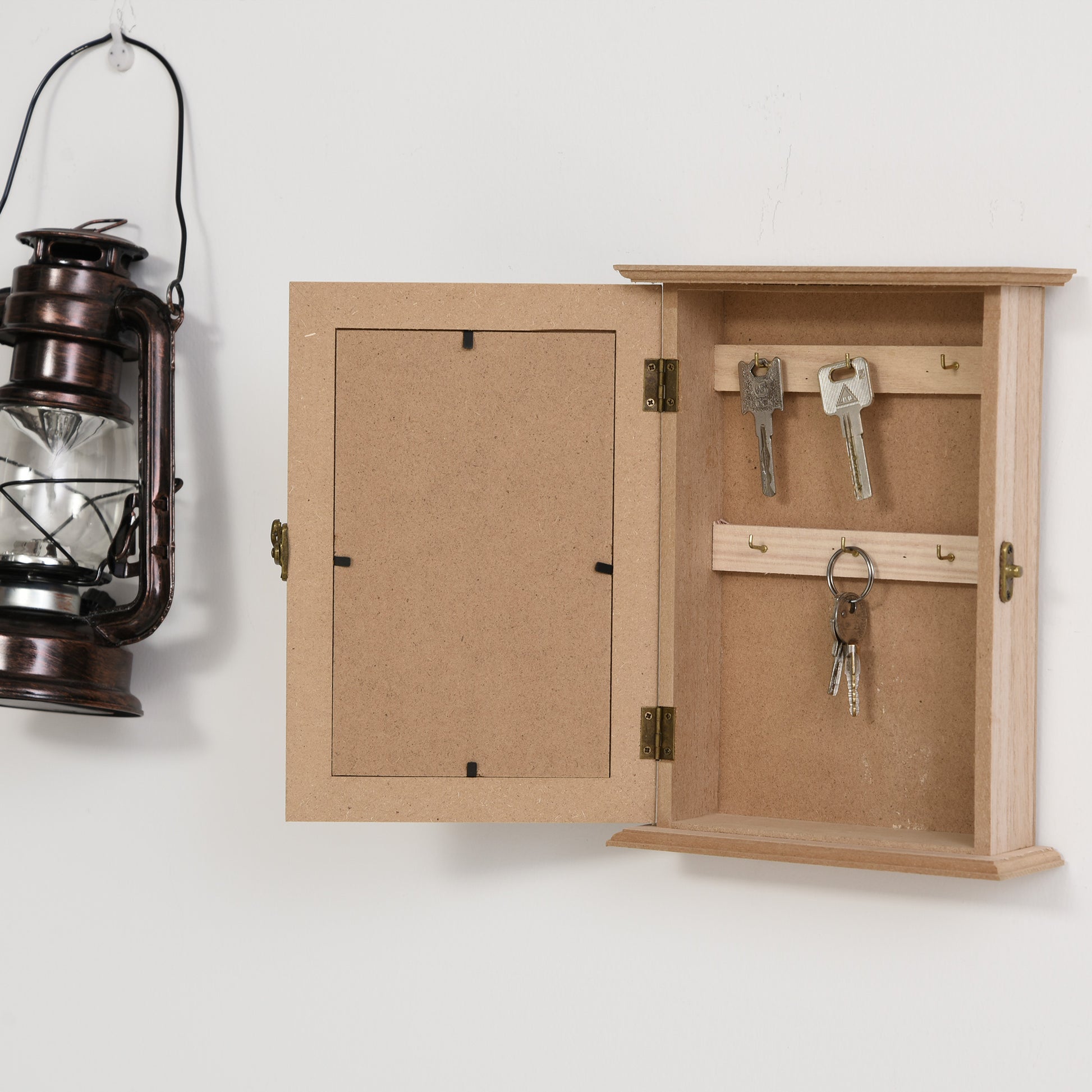 HOMCOM Armoire à Clés Vintage 6 Crochets Murale en Bois 20x6.5x26.5 cm Bois Naturel