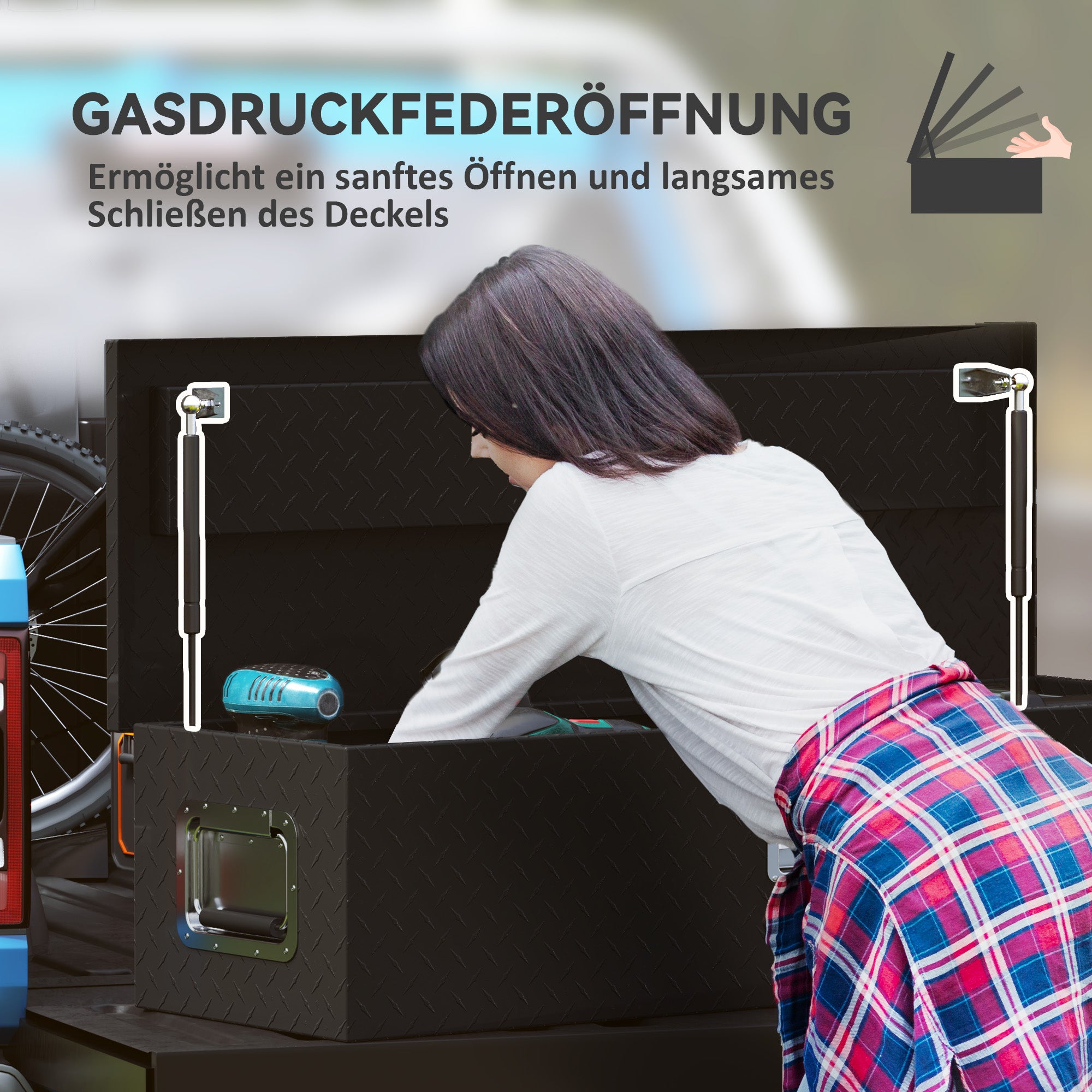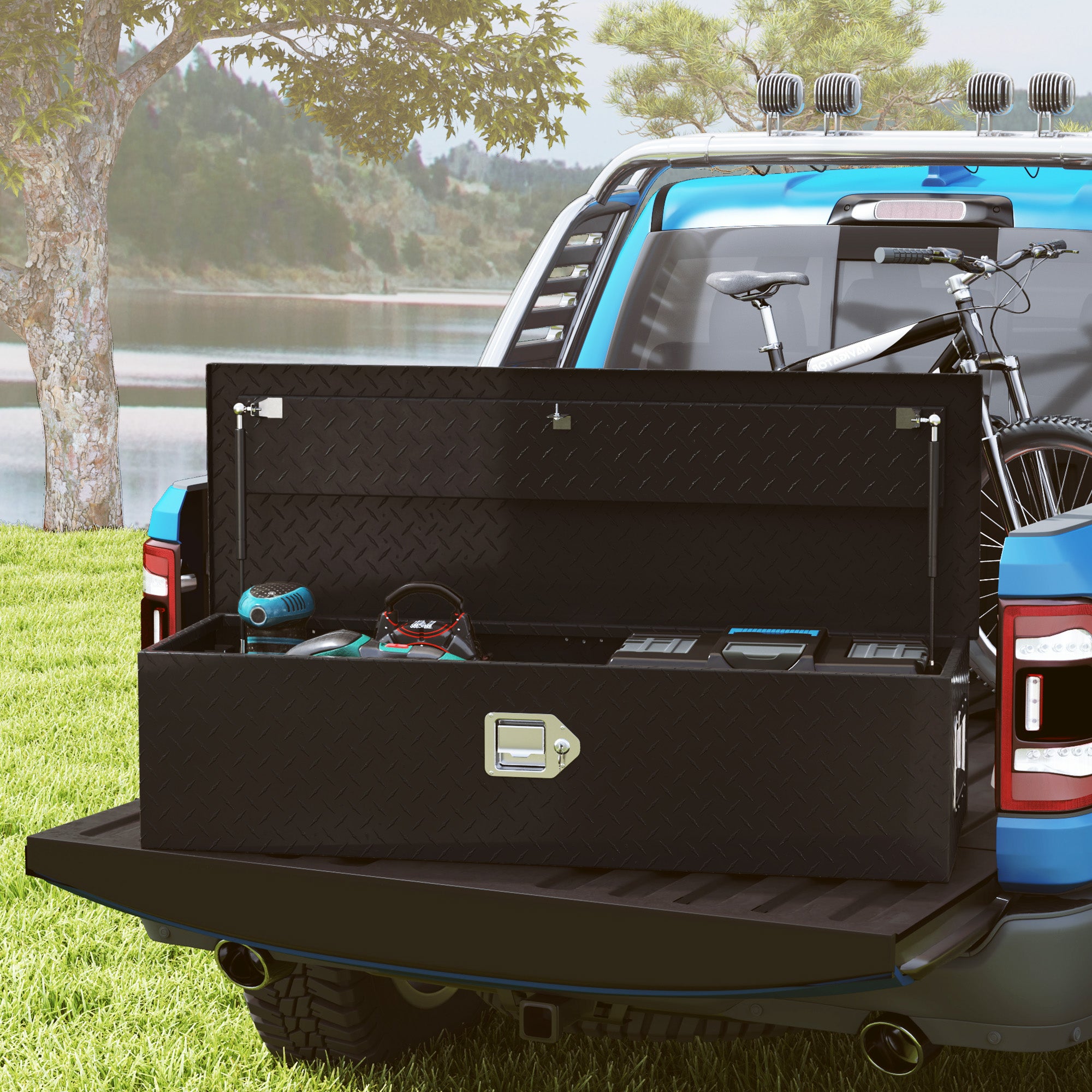 - - Rangement organisé : Avec une généreuse taille intérieure de 87L x 26l x 34H cm, la boîte à outils pour camion offre suffisamment d'espace pour les outils, le matériel de plein air, les gants, et plus encore
