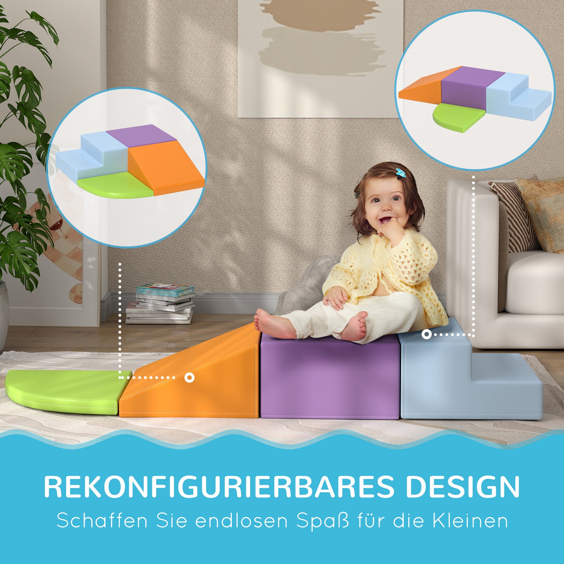 HOMCOM Ensemble de 4 Blocs de Construction en Mousse pour Enfants - Blocs de Construction Doux, Blocs Géants, Jouets de Construction, Grands Blocs en Mousse, Blocs de Jeu pour Bébés et Tout-Petits Multicolores