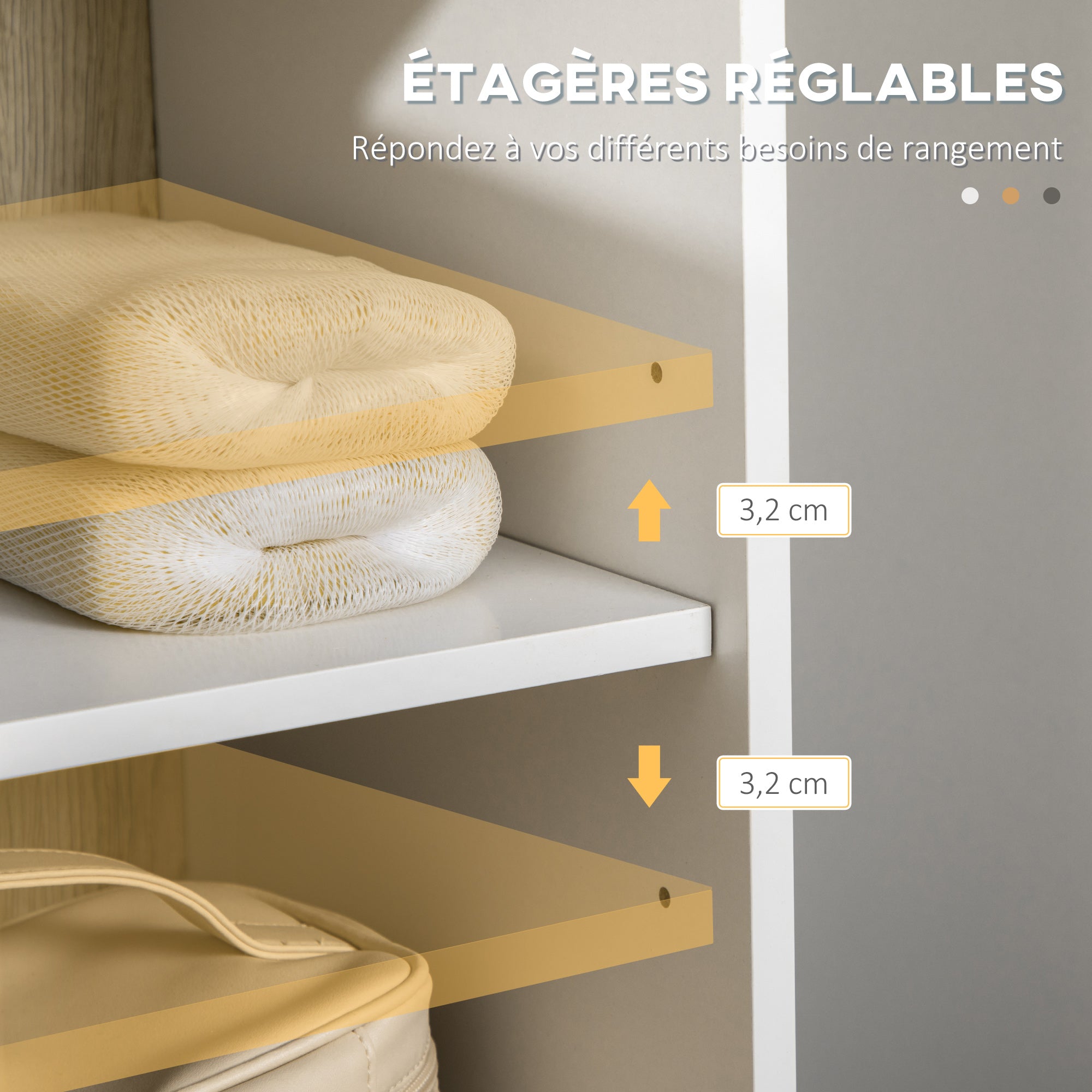 Meuble colonne de salle de bain Kleankin - Cabinet haut pour toilettes avec pieds en épingle, 2 placards fermés avec étagère et 2 niches ouvertes - 30 x 31,5 x 169 cm