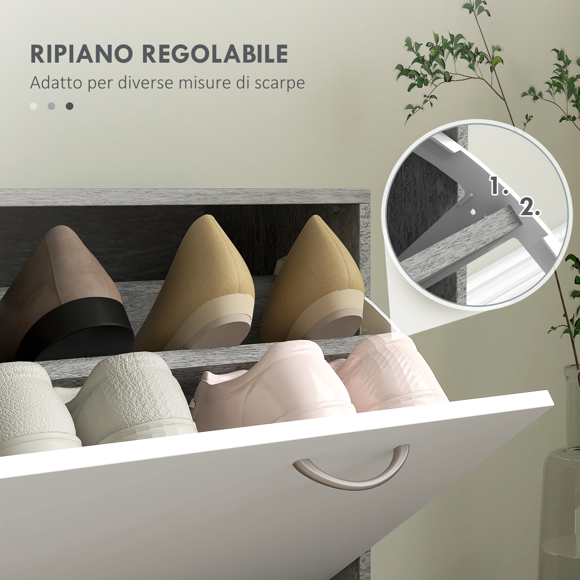 - - MEUBLE À CHAUSSURES AVEC PORTE À BASCULE : Ce porte-manteau avec meuble à chaussures à 2 étagères vous permet de ranger les chaussures et accessoires de manière ordonnée. L'étagère centrale est réglable pour accueillir différents types de chaussures