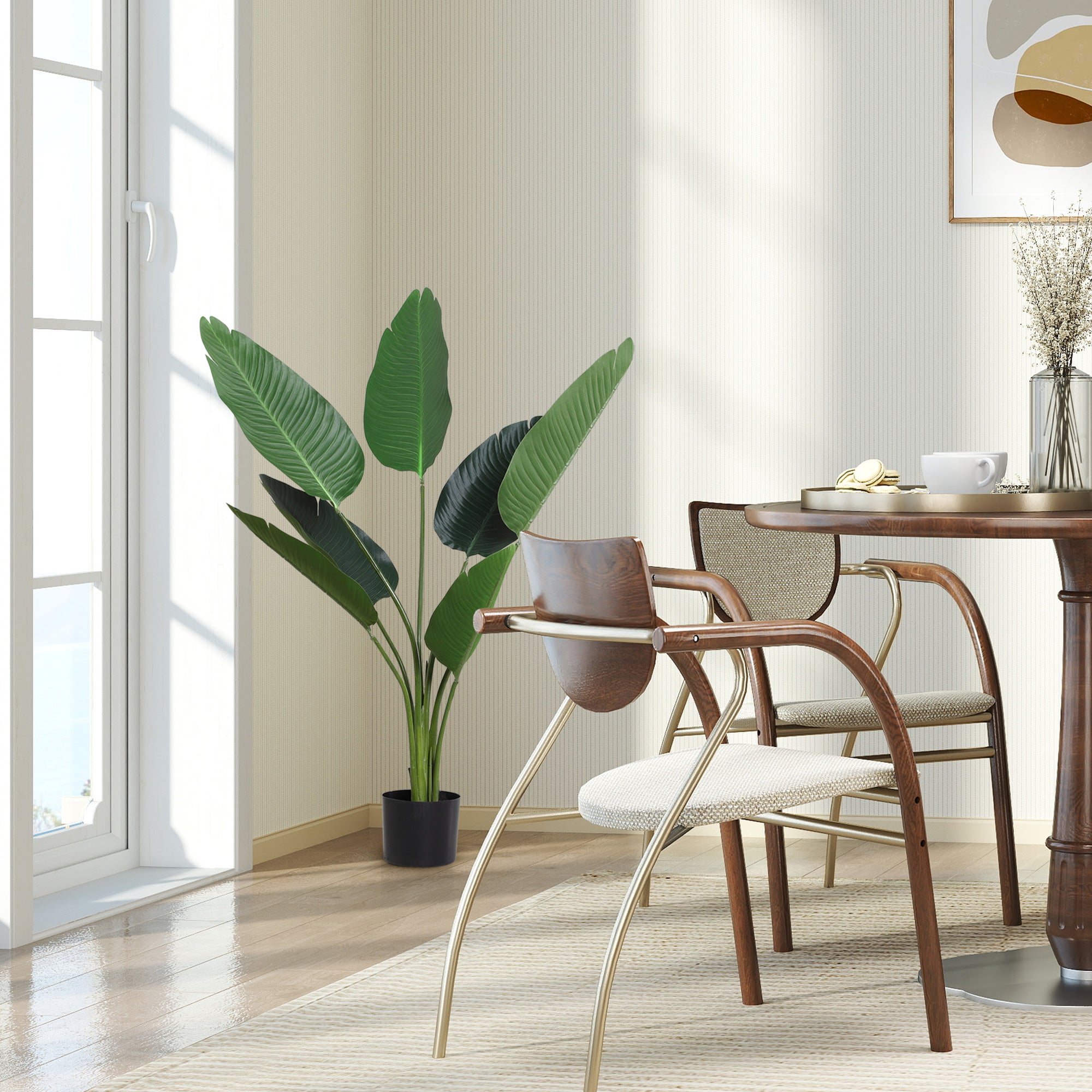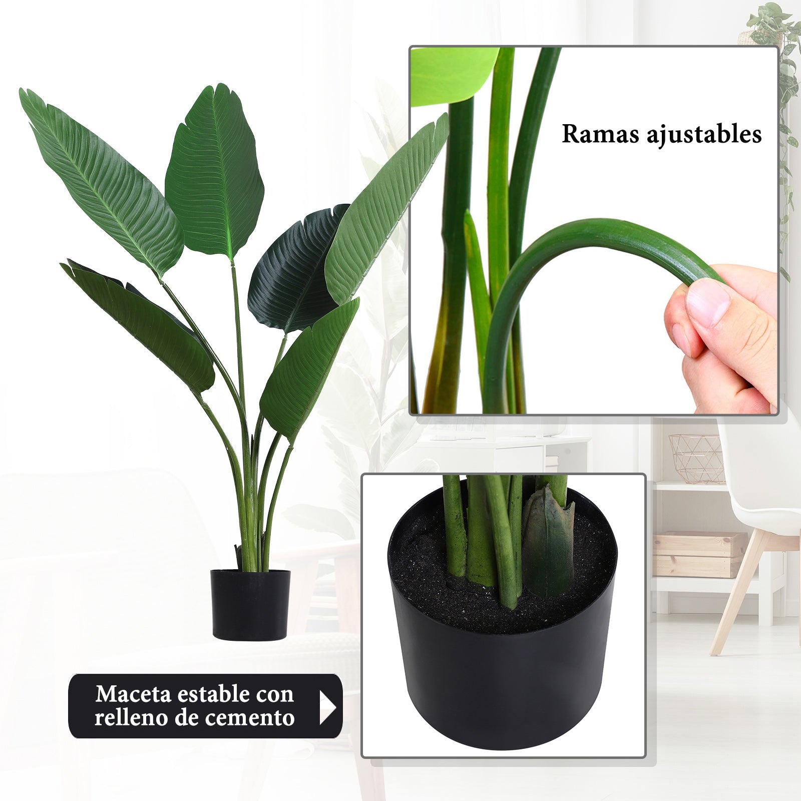 - - TRÈS RÉALISTE : Grande plante artificielle avec finition détaillée en plastique PE de haute qualité, résistant et durable. Ses 7 feuilles ont des tons et des textures similaires à une plante naturelle, reproduisant fidèlement son apparence