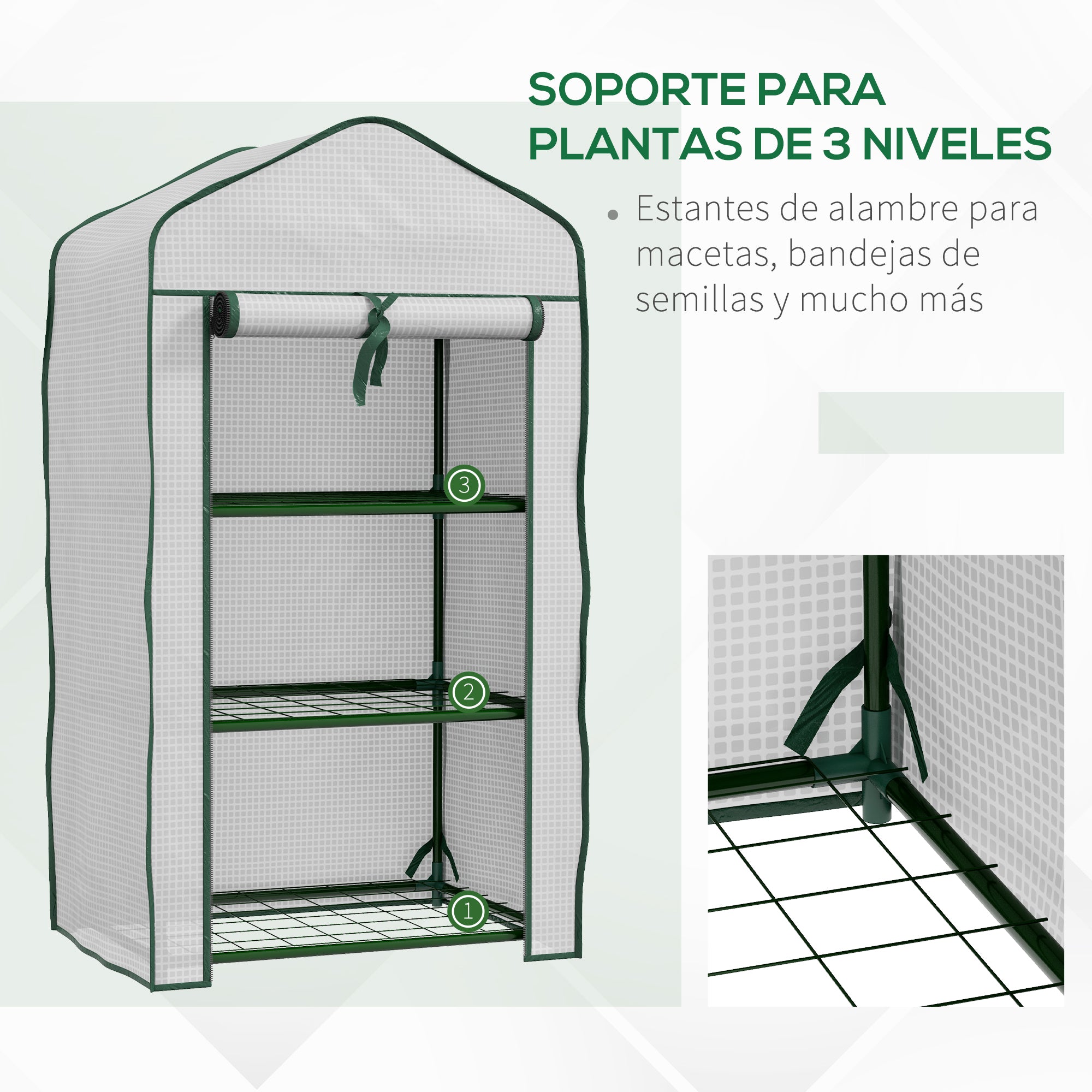 Serre de Jardin 3 Niveaux Outsunny avec 3 Étagères et 1 Porte Zippée pour Cultiver Plantes, Fleurs, Légumes - 59x39x127 cm Blanc