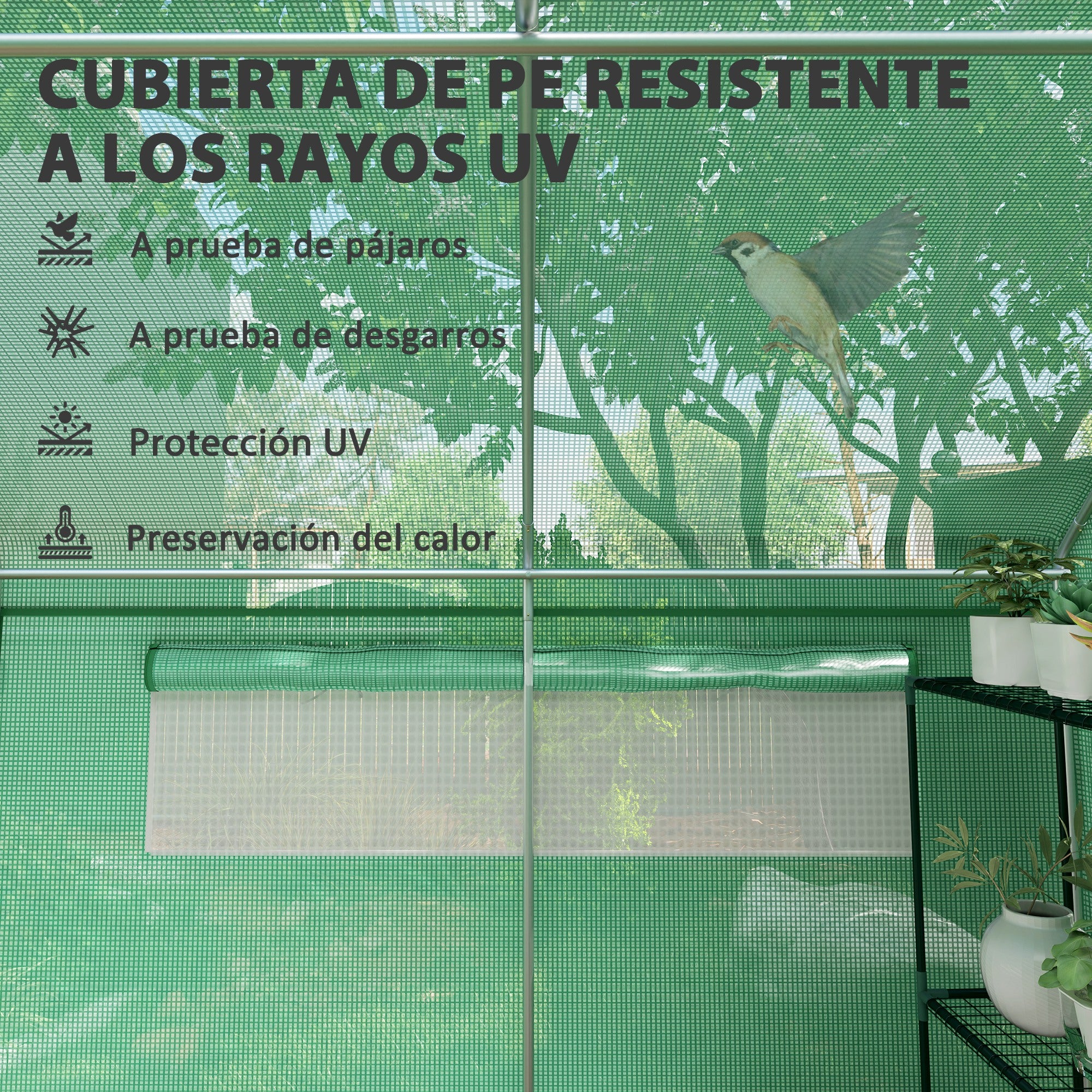 - - COUVERTURE PE : La couverture PE de cette serre de jardin offre une protection totale contre les rayons UV, maintient des niveaux d'humidité idéaux pour la culture des plantes et laisse passer 85 % de la lumière solaire. La maille renforcée prévient les déchirures.