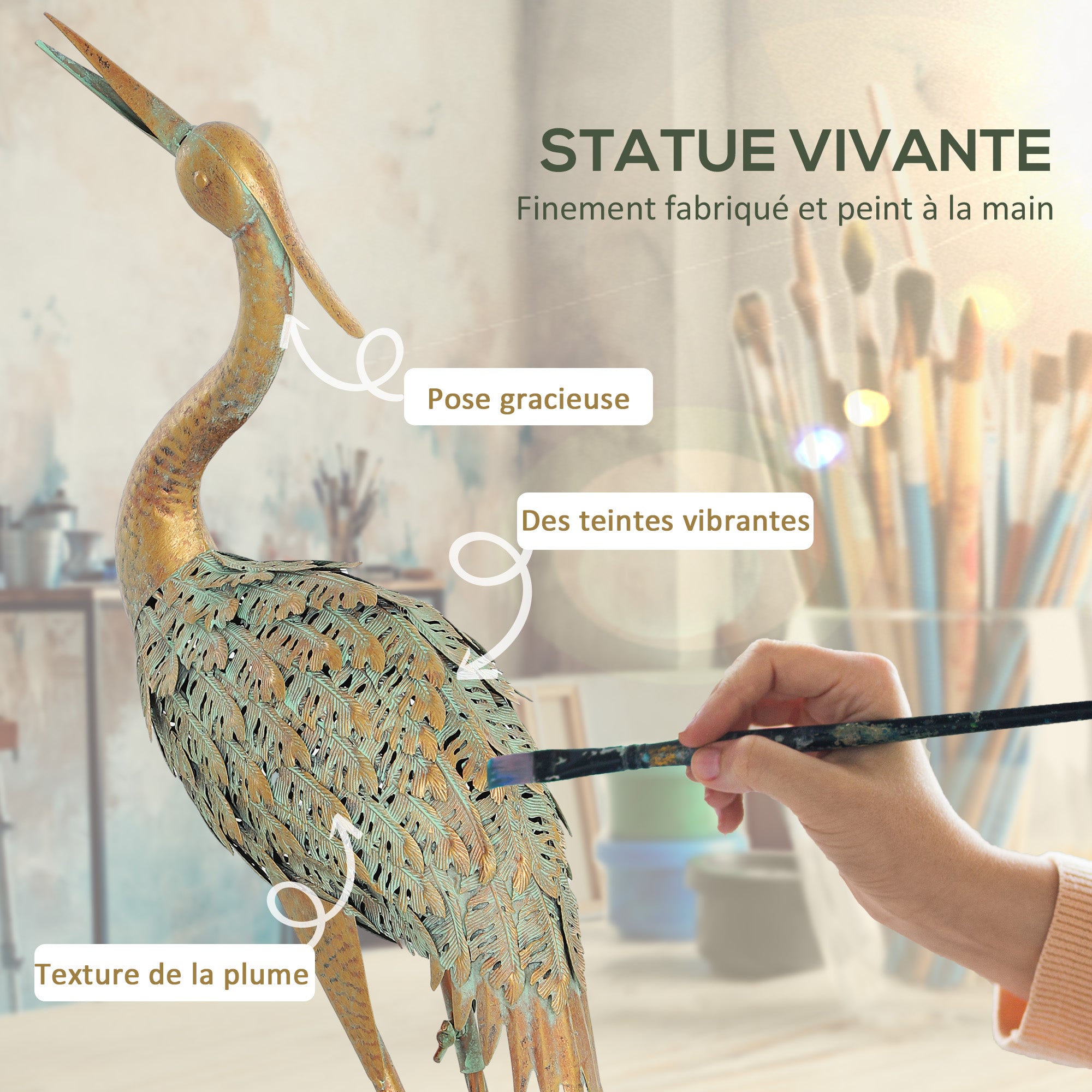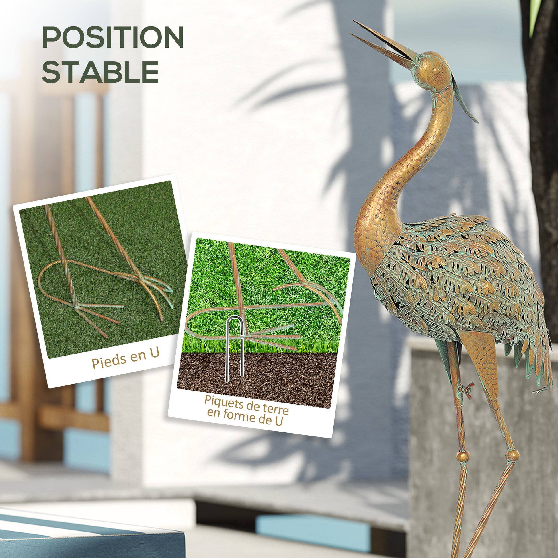 Statue de Jardin Extérieure Outsunny, Sculpture en Métal de Héron, Décoration de Jardin Extérieur 90 cm, pour Étang, Patio, Terrasse, Pelouse, Multicolore