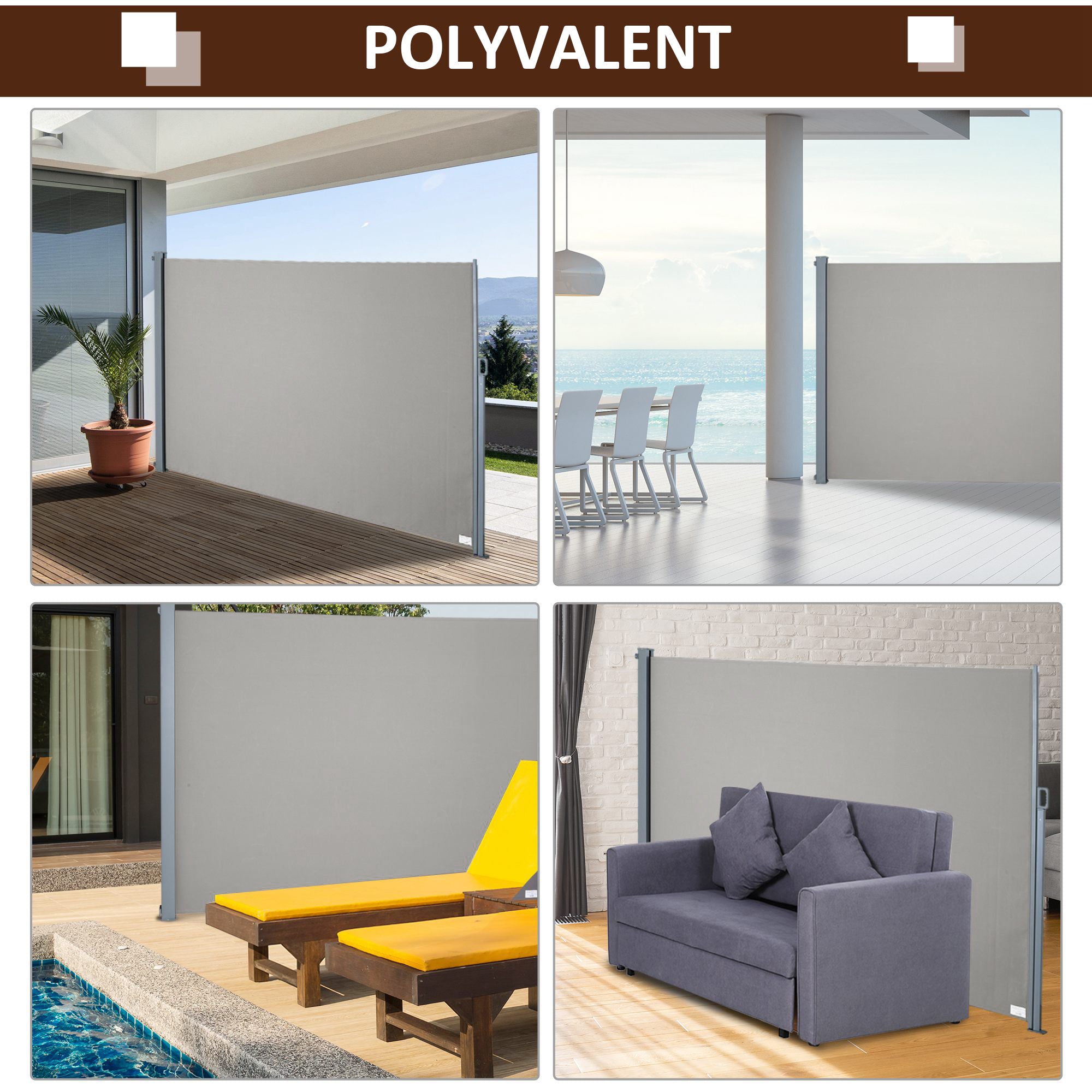 - - MATÉRIAUX DE QUALITÉ : Store latéral rétractable en polyester 280 g/m² anti-UV avec revêtement en polyuréthane et solide structure en aluminium. Un cadre en métal époxy assure une durabilité et une longévité parfaites pour votre espace extérieur.